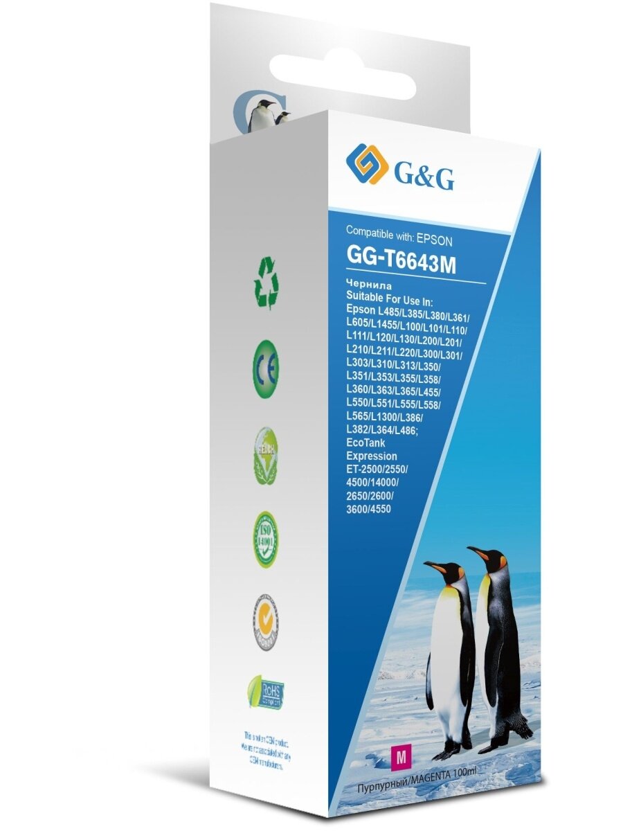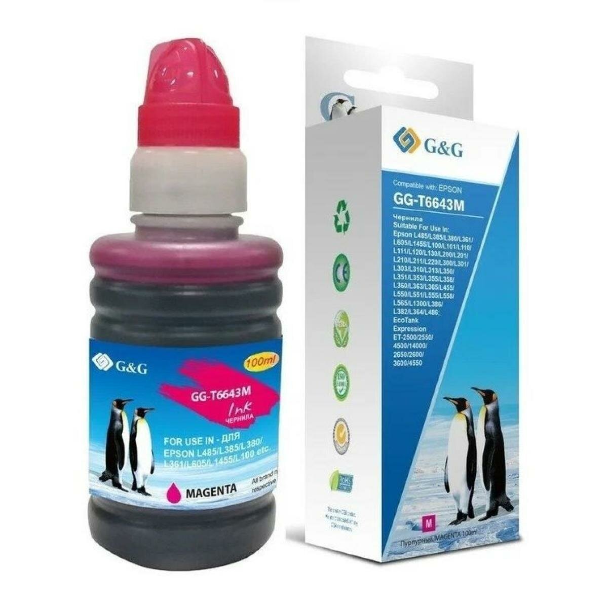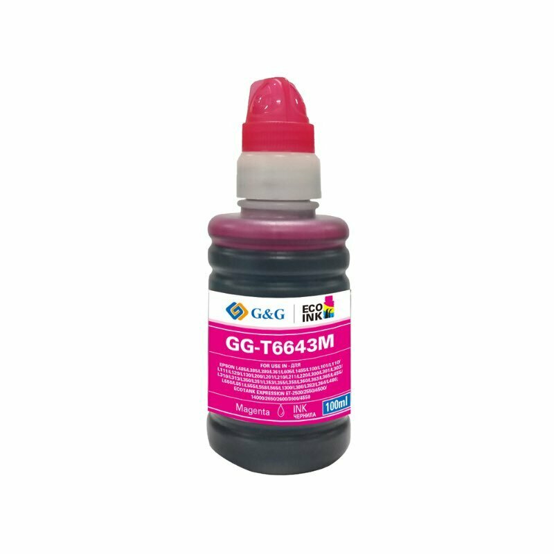 Чернила G&G GG-T6643M пурпурный, флаконов: 1, объём 100мл, для Epson L100, L110, L120, L130, L132, L210, L222