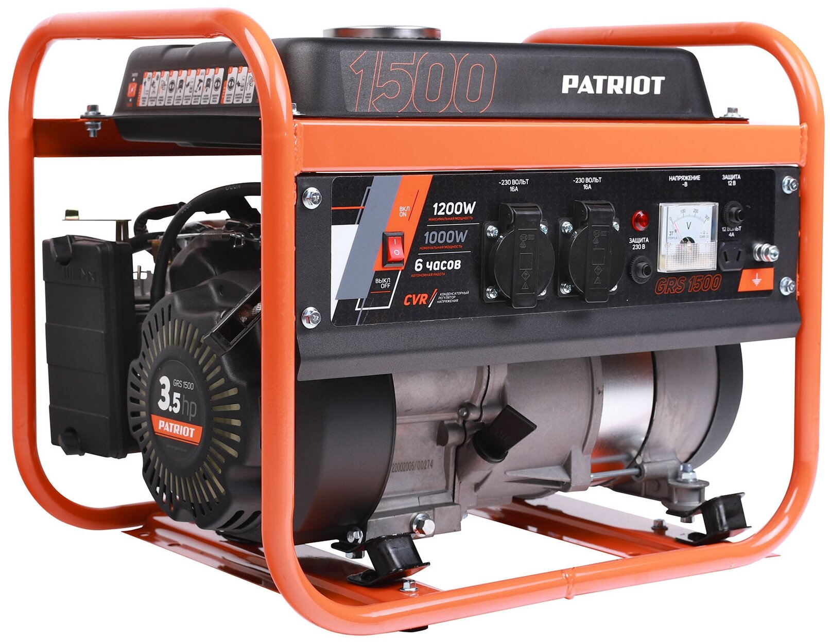 Генератор Patriot GRS 1500 однофазный (220 вольт), мощность 1кВт, максимальная мощность 1.2кВт, бензиновый 4-х тактный двигатель (476102225)