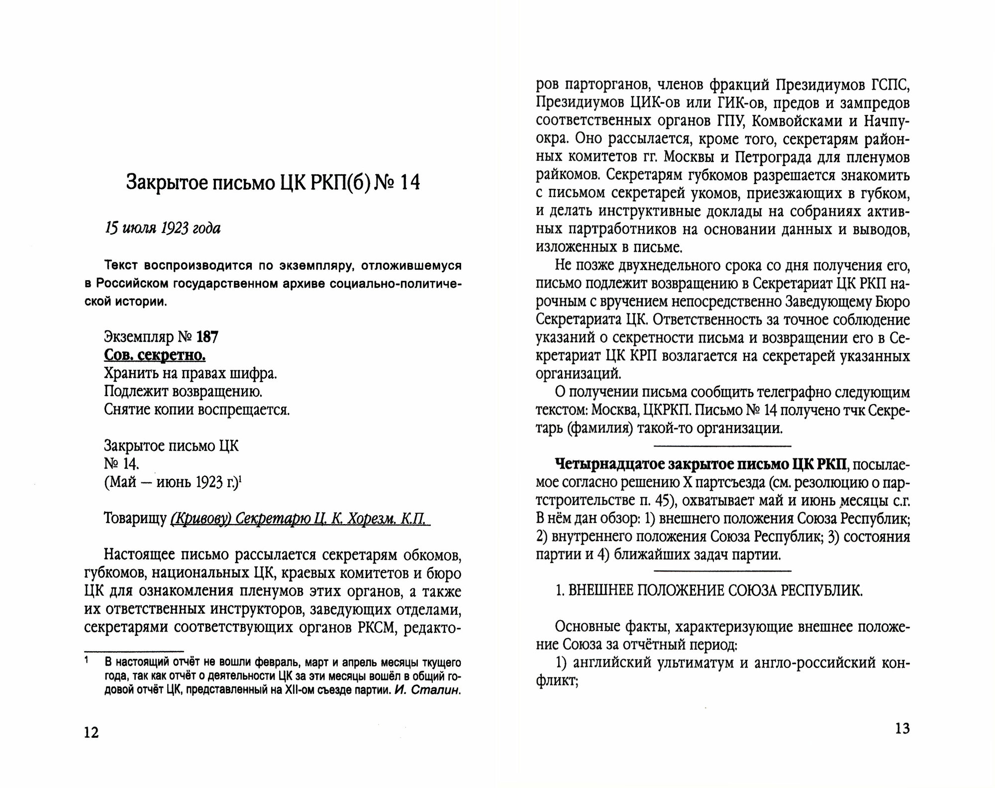 Несмотря на уникальность Закрытых писем ЦК как источника о состоянии РКП(б) и её ближайших политических ориентирах они до сих пор не вовлечены в научный оборот. Из архивных документов следует, что по меньшей мере с 1922 года И.В. Сталин являлся ответственным редактором этих обширных и подробных обзоров внешнего и внутреннего положения партии и страны и автором целых фрагментов, фиксирующих ключевые политические оценки и текущие партийные задачи, обнаруживая при этом непосредственное владение материалом и недюжинную широту кругозора.