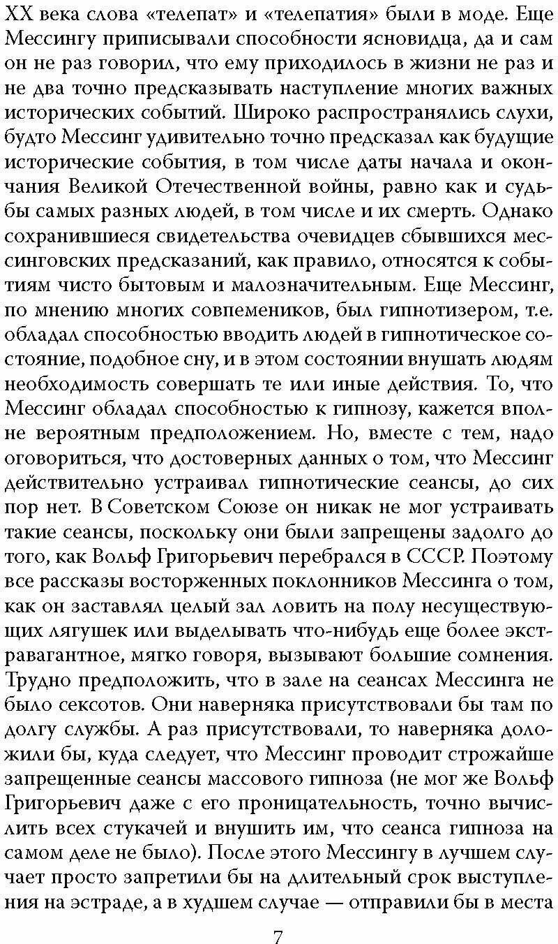 Имя Вольфа Мессинга как при его жизни, так и после смерти окружает ореол таинственности, который не смогли рассеять ни его собственные мемуары, ни множество посвященных ему книг и статей. Кем был этот выходец из Польши, бежавший в Советский Союз от нацистов, — ясновидцем, предвидевшим будущее, гениальным артистом или ловким шарлатаном? Почему он скрывал даже от близких людей многие детали своего прошлого или намеренно окружал их тайной? Был ли он знаком со Сталиным, Эйнштейном, Ганди, сидел ли в тюрьме, раскрывал ли преступления с помощью своего уникального дара? Авторы большинства работ о Мессинге некритически превозносят его или, напротив, обвиняют во всех грехах. Первая биография великого телепата, написанная историком Борисом Соколовым, непредвзято рассматривает все известные свидетельства о Мессинге, по крупицам восстанавливая картину его жизни — не такой увлекательной, как в романах и фильмах, но, тем не менее, весьма необычной