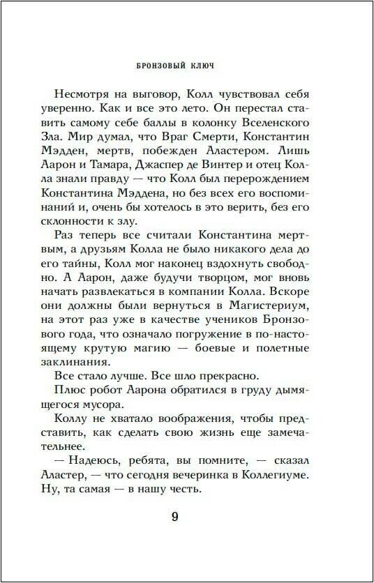 Книга очень короткая, даже не заметила, как она закончилась. Серия мне продолжает нравиться, потому что третья часть оказалась самой интересной и захватывающей(по моему мнению). Третий год обучения в магистериуме - бронзовый год. Цель ребят на этот год - найти шпиона. Моментами было скучно, я все предсказывала, но конец меня удивил.. Такого действительно сложно было ожидать. Здесь все очень эмоционально.