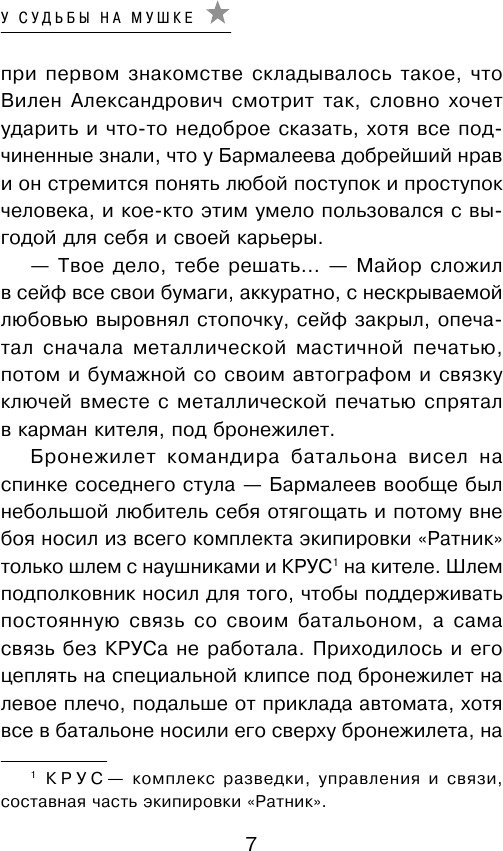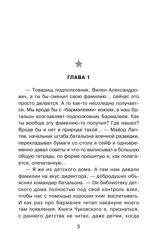 Подполковник Вилен Бармалеев командует разведывательным батальоном в Сирии. Вместе с приданными ему подразделениями морских пехотинцев и сирийской народной армии спецназ ГРУ успешно громит банды моджахедов по всей линии фронта. Но однажды случается невероятное — один из бойцов батальона не выполнил приказ своего командира. Что это — саботаж или малодушие? Бармалеев не спешит с выводами, тем более что случившиеся вскоре грозные события показали, кто оказался прав на самом деле…