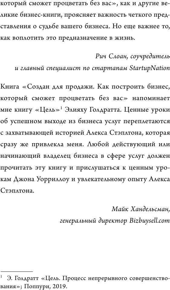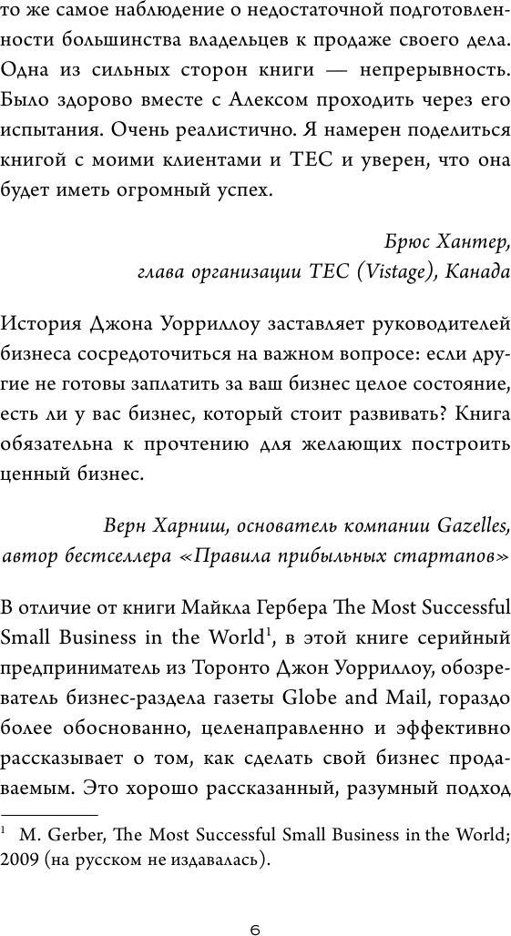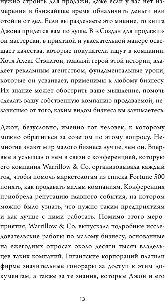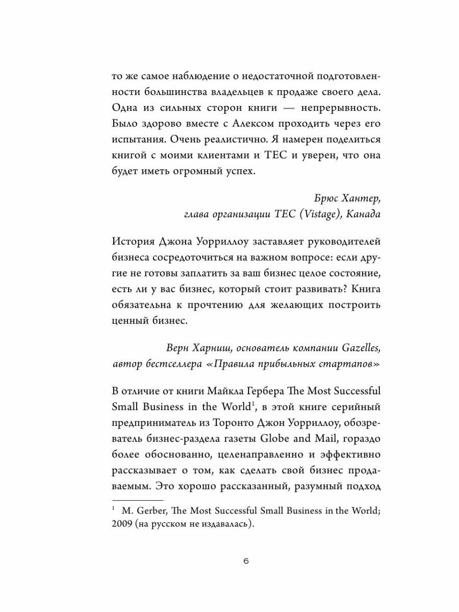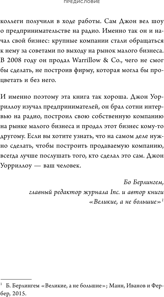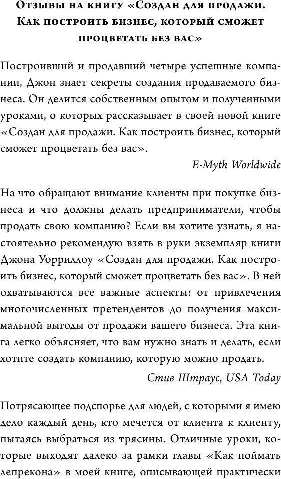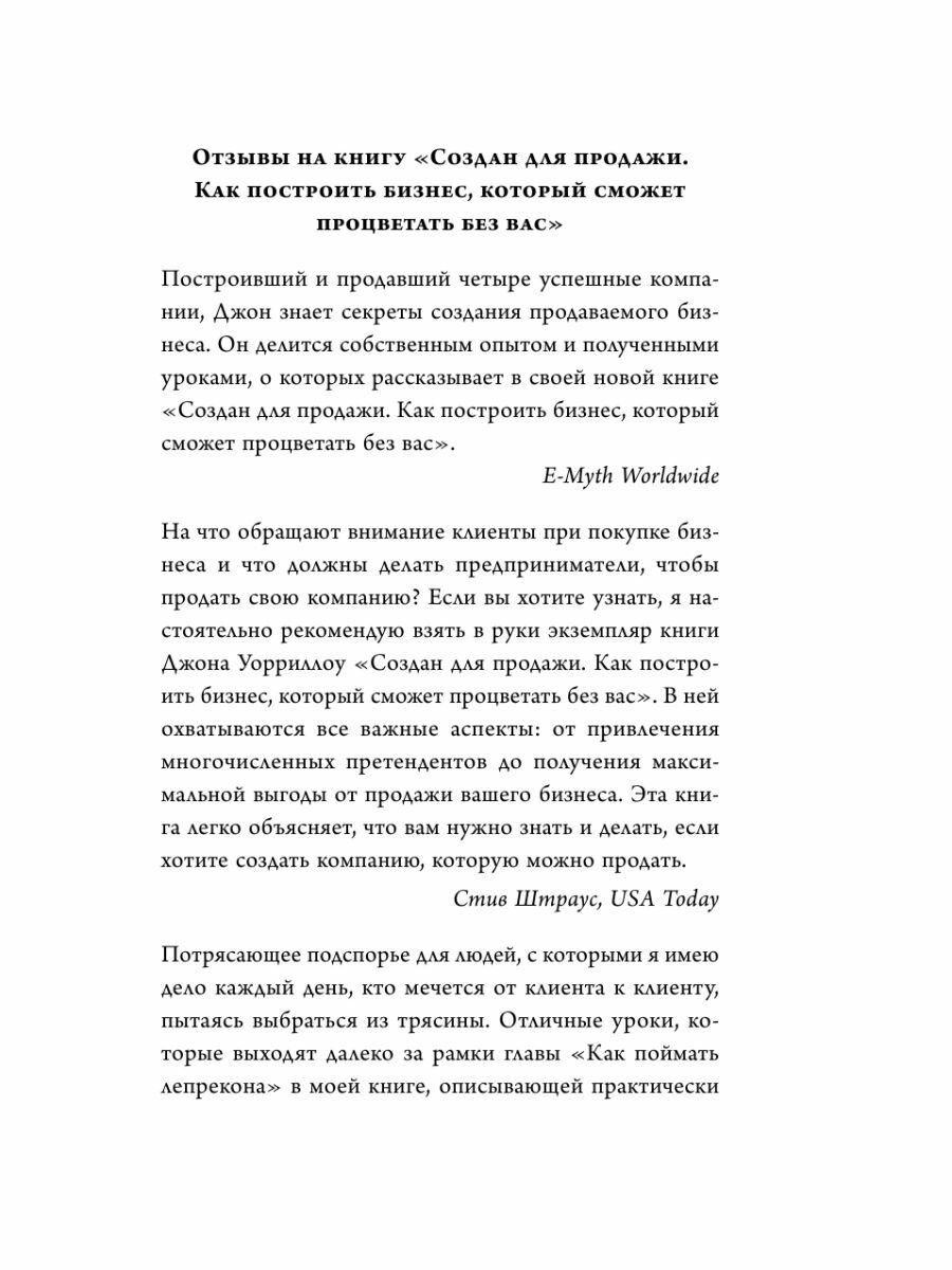 "Джон мастерски освещает качества, которые покупатели бизнеса ищут в компании, и делает это в очень приятной и увлекательной манере". - Бо Берлингем, главный редактор журнала Inc. и автор книги "Великие, а не большие"