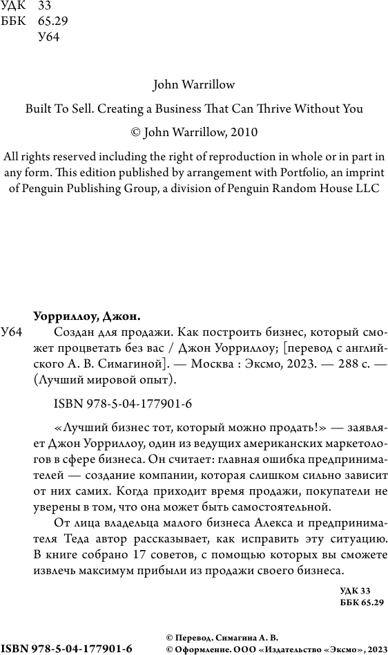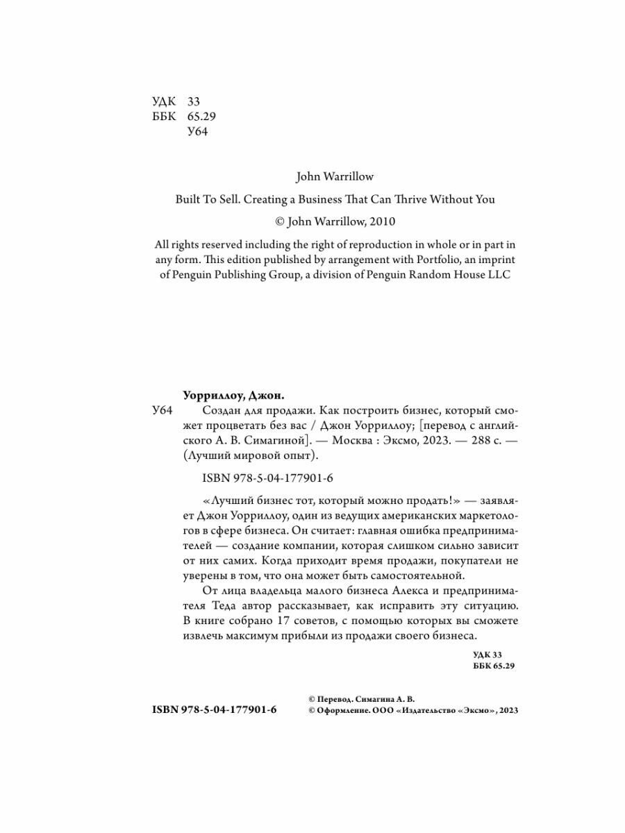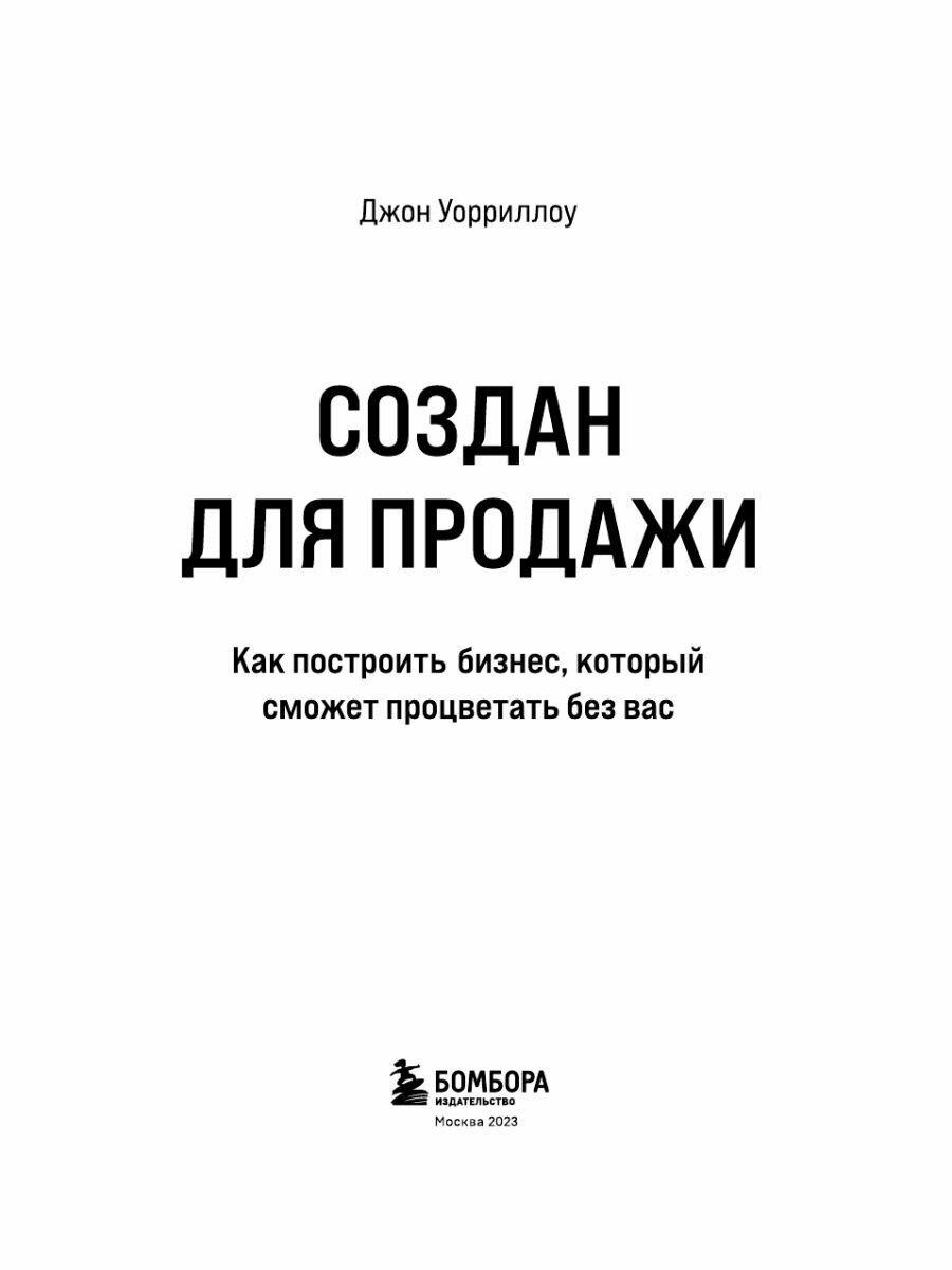 Создан для продажи. Как построить бизнес который сможет процветать без вас (Джон Уорриллоу); Эксмо, БОМБОРА, 2023