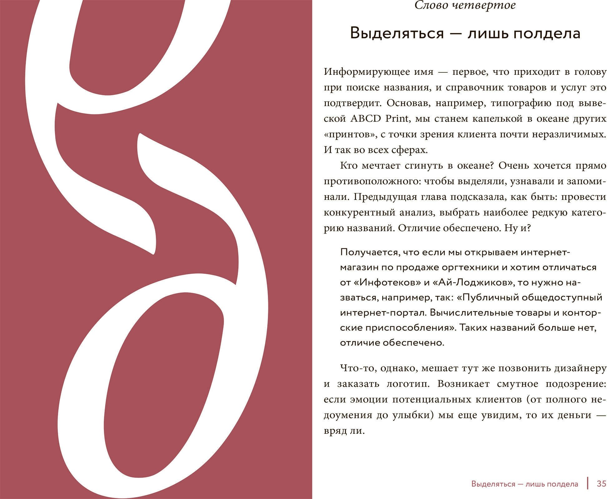 Эта книга о том, как создаются названия. Совершенно разные, для любой торговой марки. В теории бизнеса эта область называется неймингом и является важнейшей частью маркетинговой стратегии, без которой невозможно позиционирование бренда.