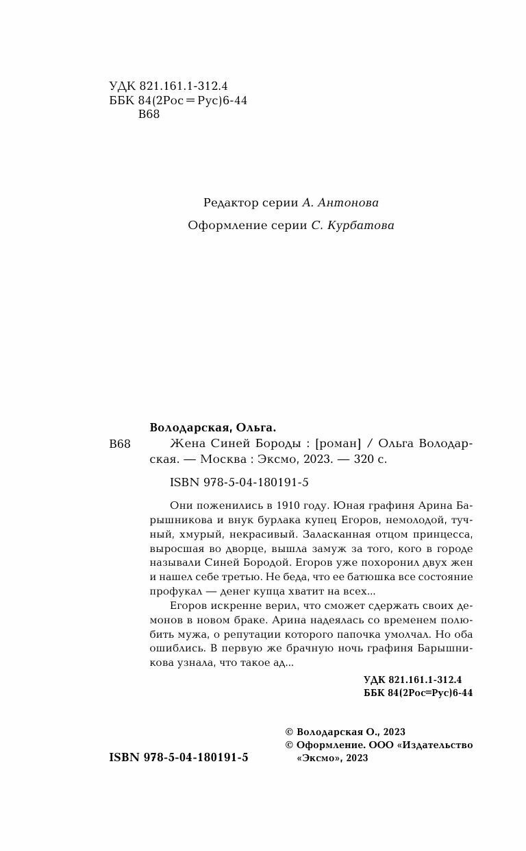 Книга: Жена Синей Бороды (Володарская Ольга Геннадьевна); Эксмо, Редакция 1, 2023