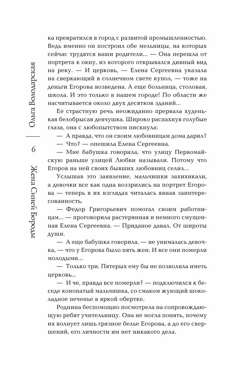 Здравствуйте!Пришла оставить отзыв на данную книгу \"Жена Синей Бороды\".Мне очень понравилась эта книга.Сюжет не затянуты прямой любовных линий там не много но акцент на одной единственной .Было интересно читать ,очень отвлекает от реальной жизни,посоветовала эту книгу своим подругам.Обложка очень красивая яркая глянсовая.Бумага качественная не желтая что очень важно для зрения читателей