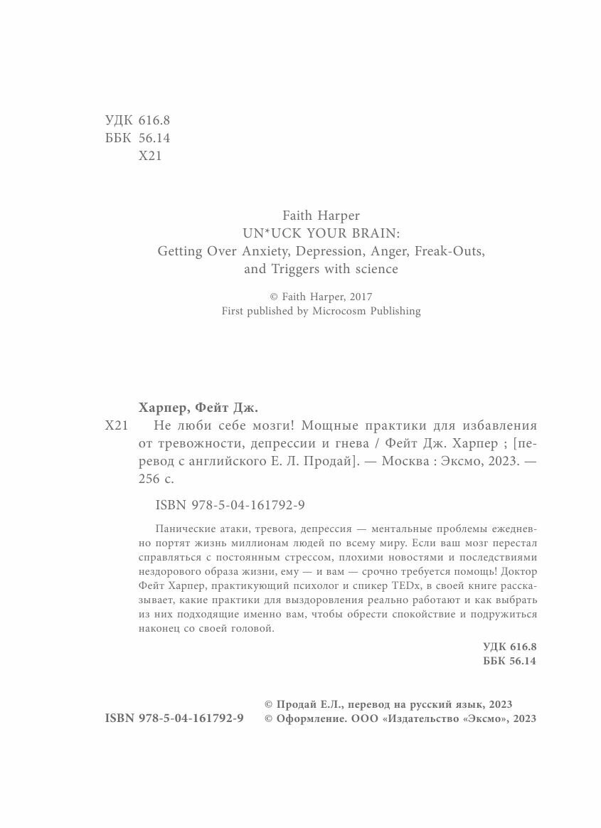 Не люби себе мозги! Мощные практики для избавления от тревожности депрессии и гнева (Харпер Фиона, Харпер Фейт Дж.); ООО "Издательство "Эксмо", 2023