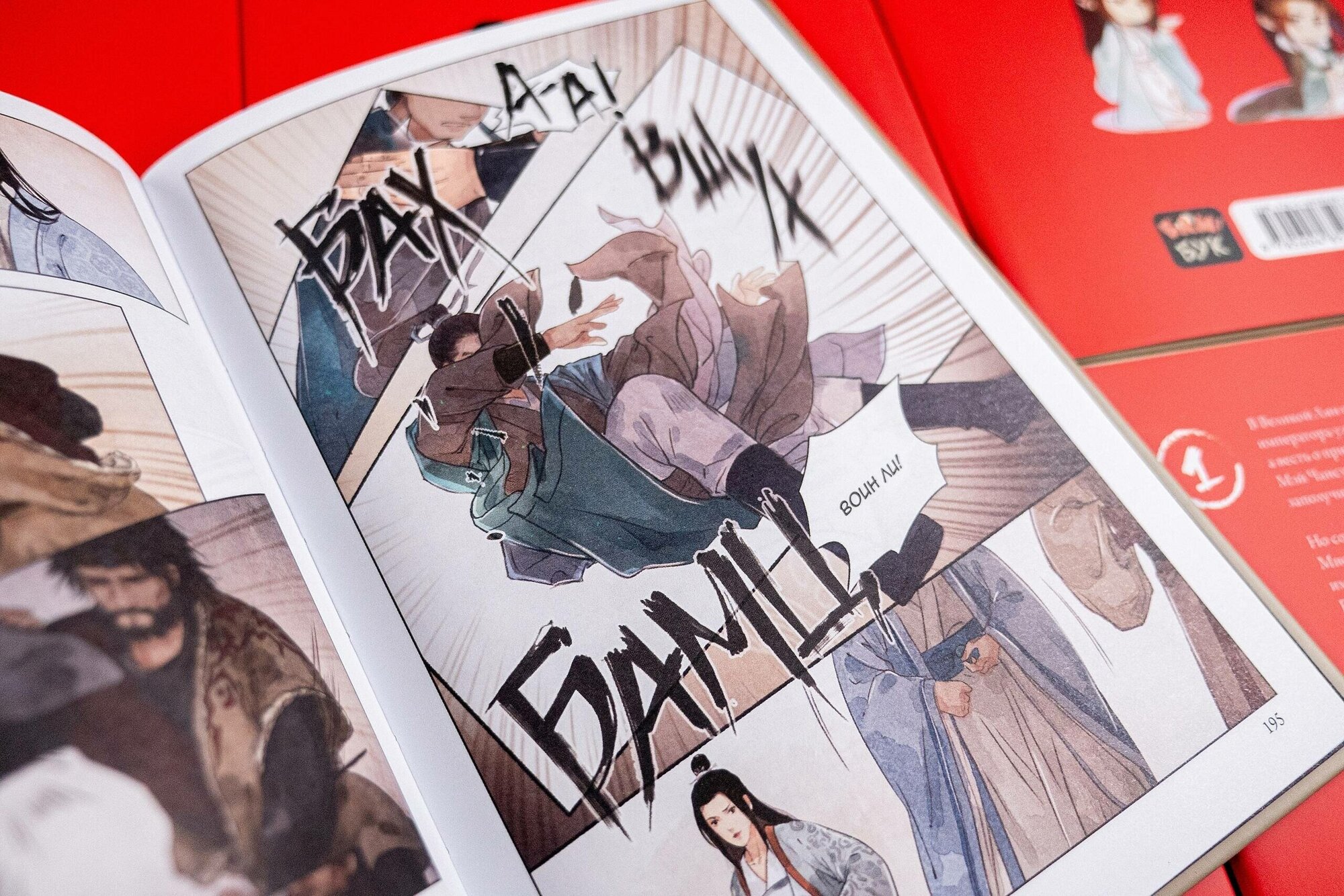 Красивая рисовка, слишком много введенных героев, о которых в первой книге мы практически ничего не узнаем. Думаю, маньхуа лучше бы выступала в качестве дополнения к новелле (если она есть), а начинать знакомство с нее не лучшее решение. Качество печати на 4-. Некоторые рисунки немного полосят (вряд ли это задумка художника), страницы от света немного "бликуют" (но не глянец). Но как же она воняет, просто ужасно... Из-за вони качество издания до единицы хочется опустить.