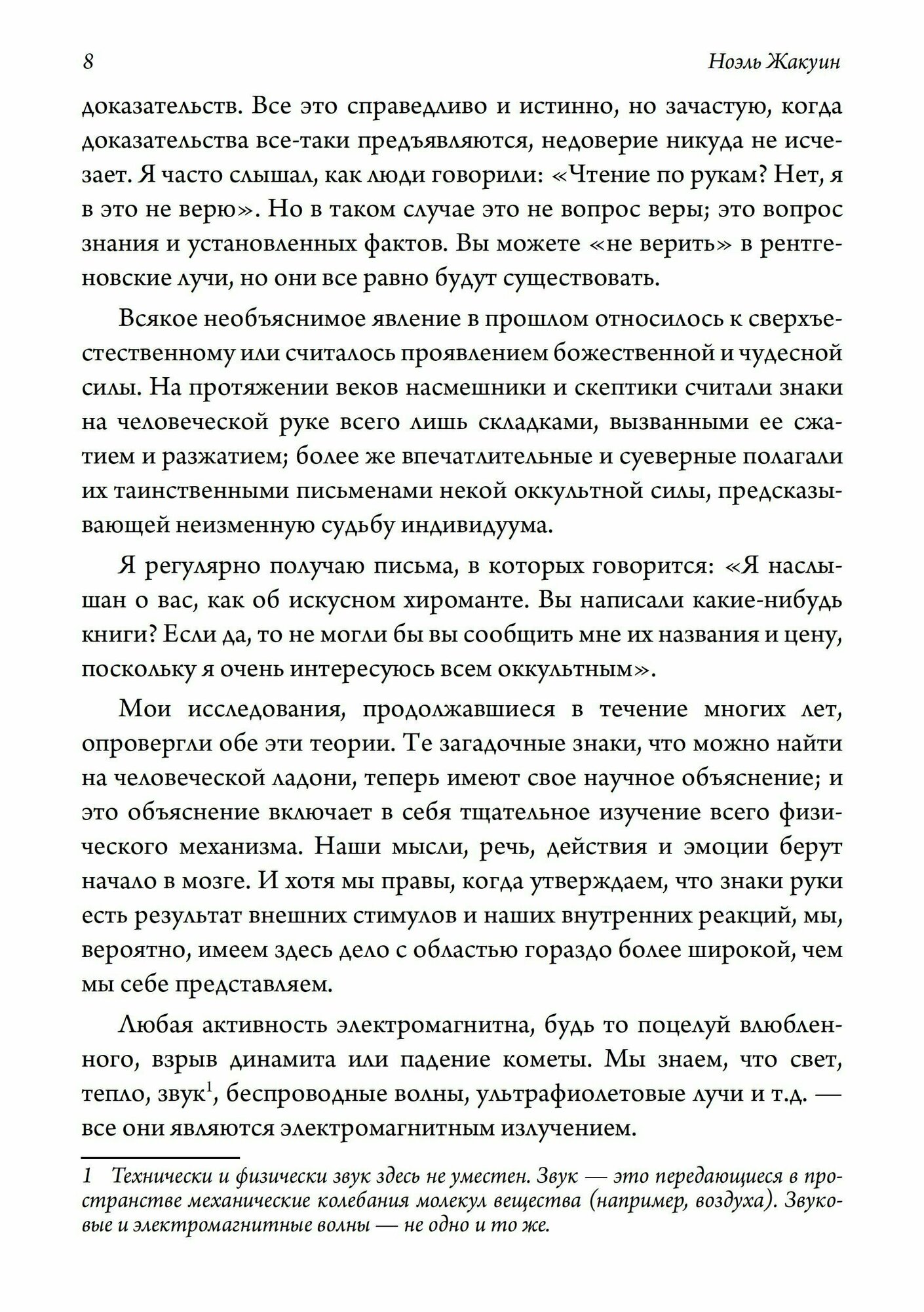Данная книга – важный труд в области хиромантии. С момента ее первой публикации прошло 90 лет, и, несмотря на огромную пропасть, что пролегла между современной наукой и наукой того времени, «Рука человека» во многом не растеряла своей актуальности. В отличие от предшествующих хиромантов, Ноэль Жакуин подчеркивал, что судьба и успешность человека зависят от него самого. Он соглашался с тем, что ладони и линии на них описывают нашу предрасположенность (и оттого «разоблачают» человека) и осознавал, что порой эта предрасположенность столь сильна, что поменять свою судьбу человеку очень непросто. Большое внимание Жакуин уделяет проблемам сексуальности и здоровья.