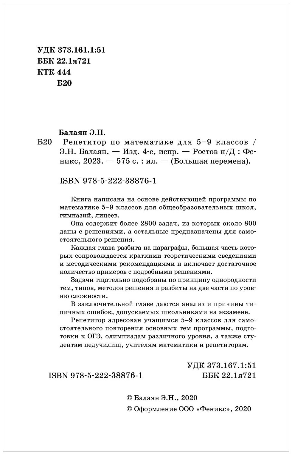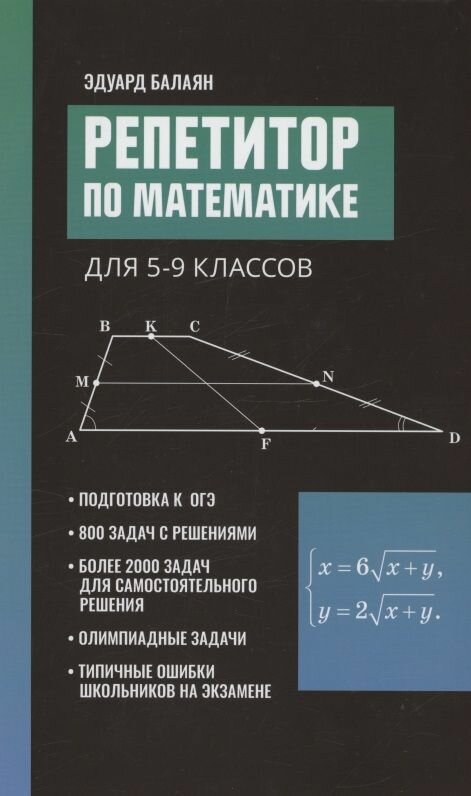 Репетитор адресован учащимся 5-9 классов для самостоятельного повторения основных тем программы, подготовки к ОГЭ, олимпиадам различного уровня, а также студентам педучилищ, учителям математики и репетиторам.