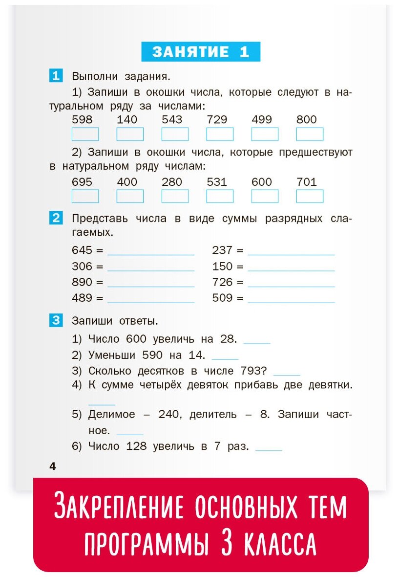 Летние задания по математике за курс 3 класса: рабочая тетрадь
