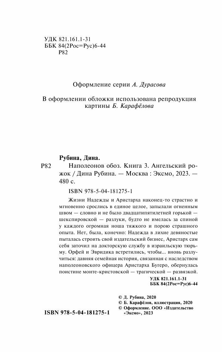 На сегодняшний день товар «Книга: Наполеонов обоз. Книга 3: Ангельский рожок (Рубина Дина Ильинична); Эксмо, 2023» можно купить с кешбеком в 4 магазинах: book24, Буквоед, Яндекс.Маркет, Читай-город