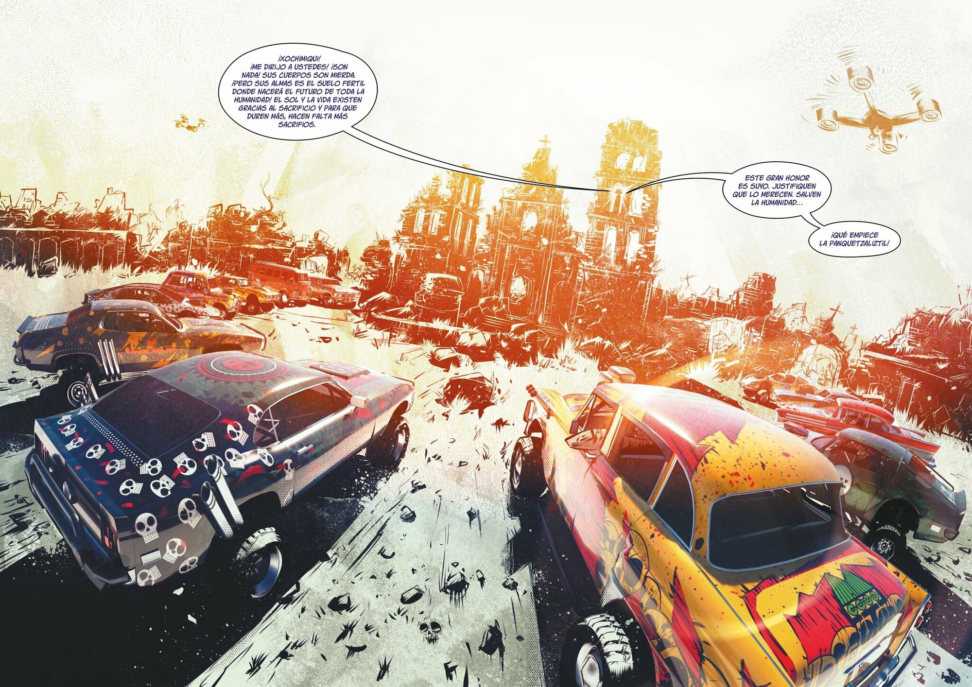 Не скажу, что данный комикс может привлечь абсолютно каждого, однако своего читателя он точно найдёт. Рисунок, он не то что б ужасен, но нарочито прост, угловат и никак не претендует даже на самую маленькую награду по художеству, однако есть в нём некое внимание к деталям, которое скрывается за массовым карандашом, и самое главное, вставки цифровых объёмных объектов. Их немного, но достаточно и в нужных местах, а на некоторых страницах однозначно вызовут эффект Вау, это просто находка и удачное сочетание простого и необычного. Сюжет, он безумен. Это некий Форсаж в испанской местности, с характерной для неё культурой. Сам комикс, это работа отечественных создателей, и я однозначно рекомендую данное творение исключительно всем читателям, как минимум из-за того, что это интересный экспириенс и смелый подход к выбору формата, а как максимум, для того что б просто поддержать креативных соотечественников. Альпаке спасибо за издание данного продукта.