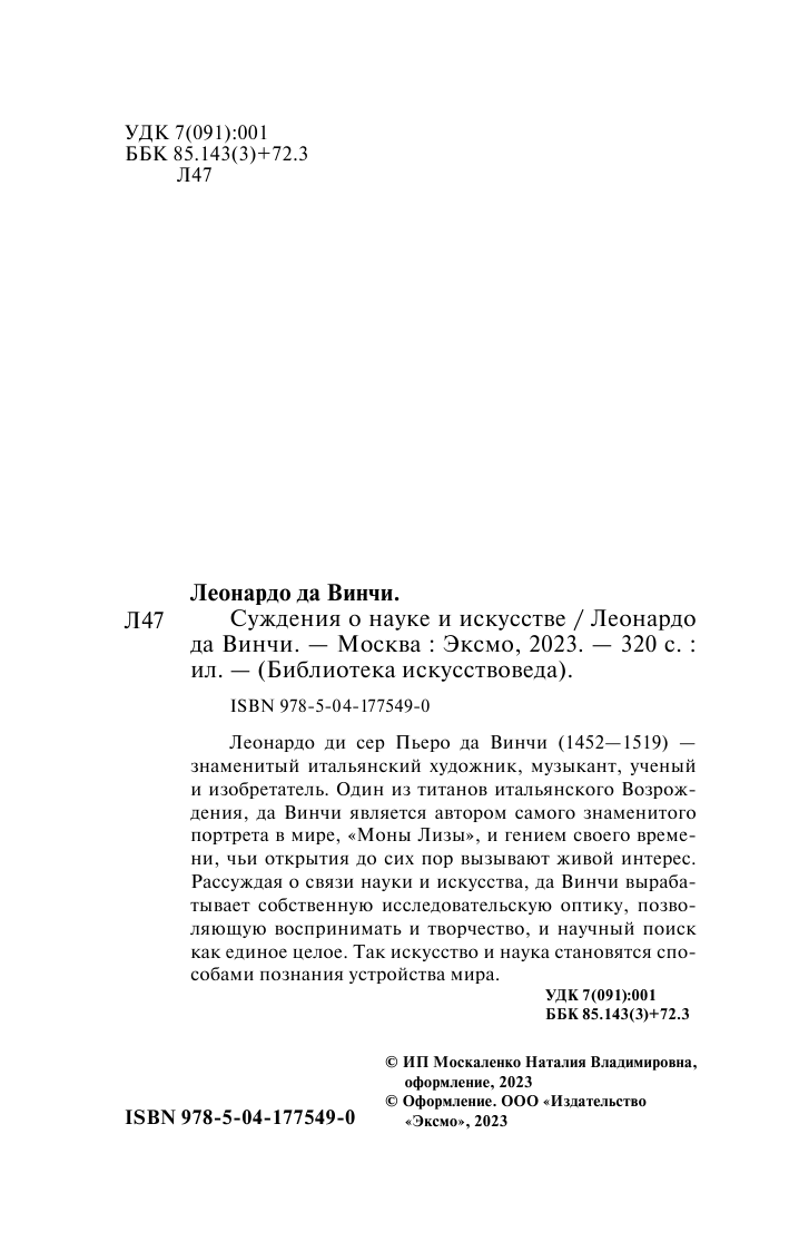 Суждения о науке и искусстве (да Винчи Леонардо); ООО "Издательство "Эксмо", 2023