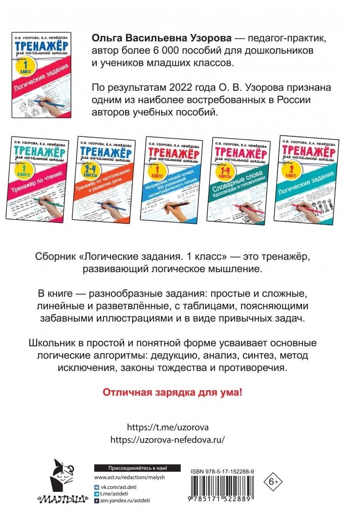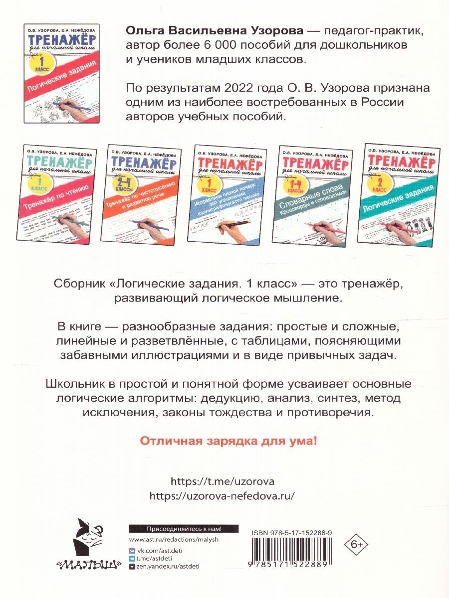 Логические задания. 1 класс (Узорова Ольга Васильевна; Нефёдова Елена Алексеевна); Сова. Малыш (Обучающая и развивающая литература), 2023