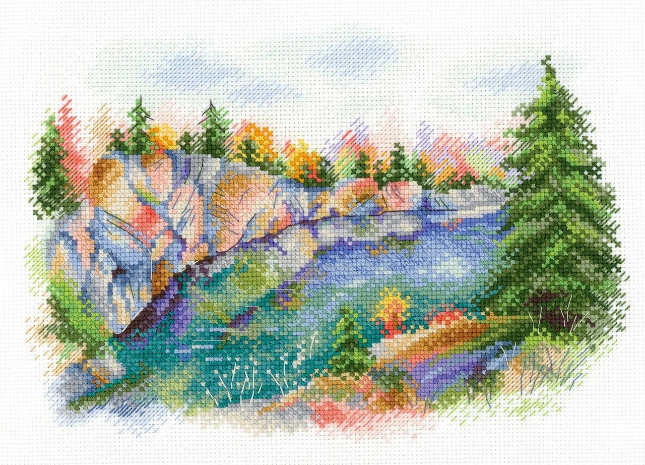 Наборы для вышивания 'МП Студия' – это продуманные схемы с тщательно подобранной цветовой палитрой. Сюжет 'Карелия. Парк Рускеала' вышивается по канве Aida 14 каунта. Она прекрасно подходит для схем с подробной детализацией, но при этом позволяет выкладывать достаточно крупные стежки. При работе с такой канвой, скорее всего, не потребуется увеличительное стекло. В работе используются разные техники: 'крест' позволяет делать цветовое заполнение, стежки 'бэкстич' создают четкие контуры, а отдельные штрихи в технике 'полукрест' придают изображению динамичность. Готовая картина напоминает рисунок карандашами или акварелью. Совет: если вам не хватает опыта, сделайте разметку канвы, ориентируясь по схеме. Разметка поможет вам быстрее закончить вышивку и избежать возможных ошибок. В наборе: канва Aida 14 ct белая, мулине, игла, схема, инструкция. Количество цветов: 30.