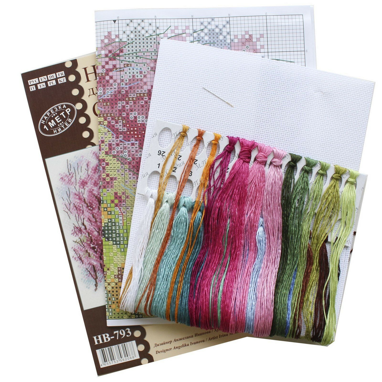 | В набор входит | хлопчатобумажная канва 14 каунта, нитки мулине Гамма 25 цветов, разобранные на органайзере, игла, цвето-символьная схема и руководство по вышиванию |