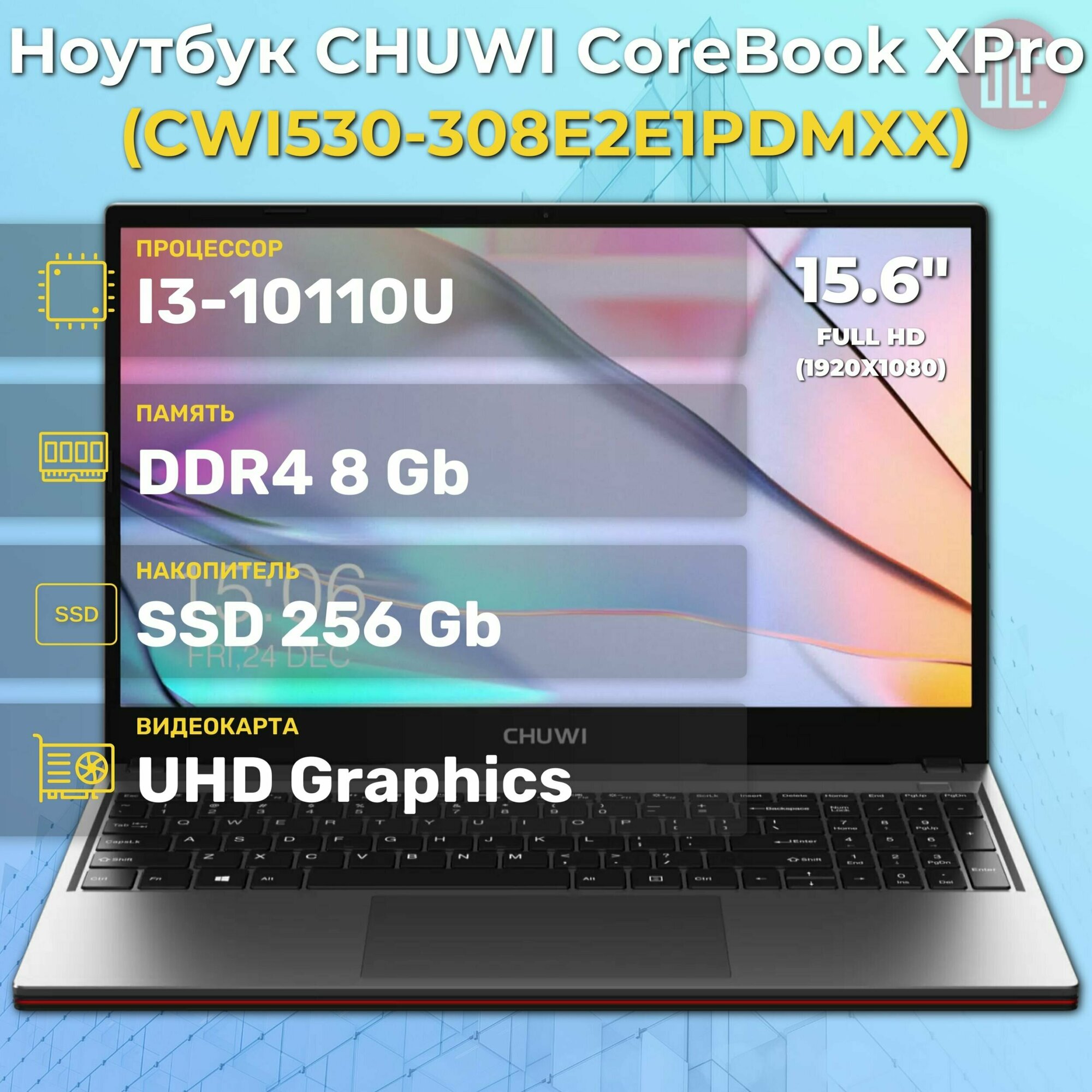 Ноутбук Chuwi Corebook Xpro grey (CWI530-308E2E1PDMXX) на базе двухядерного процессора Intel Core i3 - 10110U с частотой 2.1 ГГц - 4.1 ГГц, с оперативной памятью DDR4 объемом 8192 Мб, SSD 256 Гб для супербыстрой работы операционной системы будет Вашим надежным помощником в бизнесе и дома. Дисплей ноутбука 15.6 по технологии IPS с разрешением Full HD 1920x1080 прекрасно передает изображение на базе графического чипсета Intel UHD Graphics 620. Ноутбук Chuwi CoreBook XPro CWI530-308E2E1PDMXX серого цвета и оборудован всем необходимым: веб-камера, WiFi, Bluetooth. На лэптопе предустановлена операционная система Microsoft Windows 11 Professional.