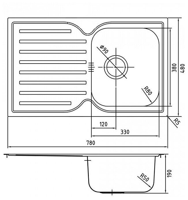 | Толщина материала мойки, мм | 0.8 |