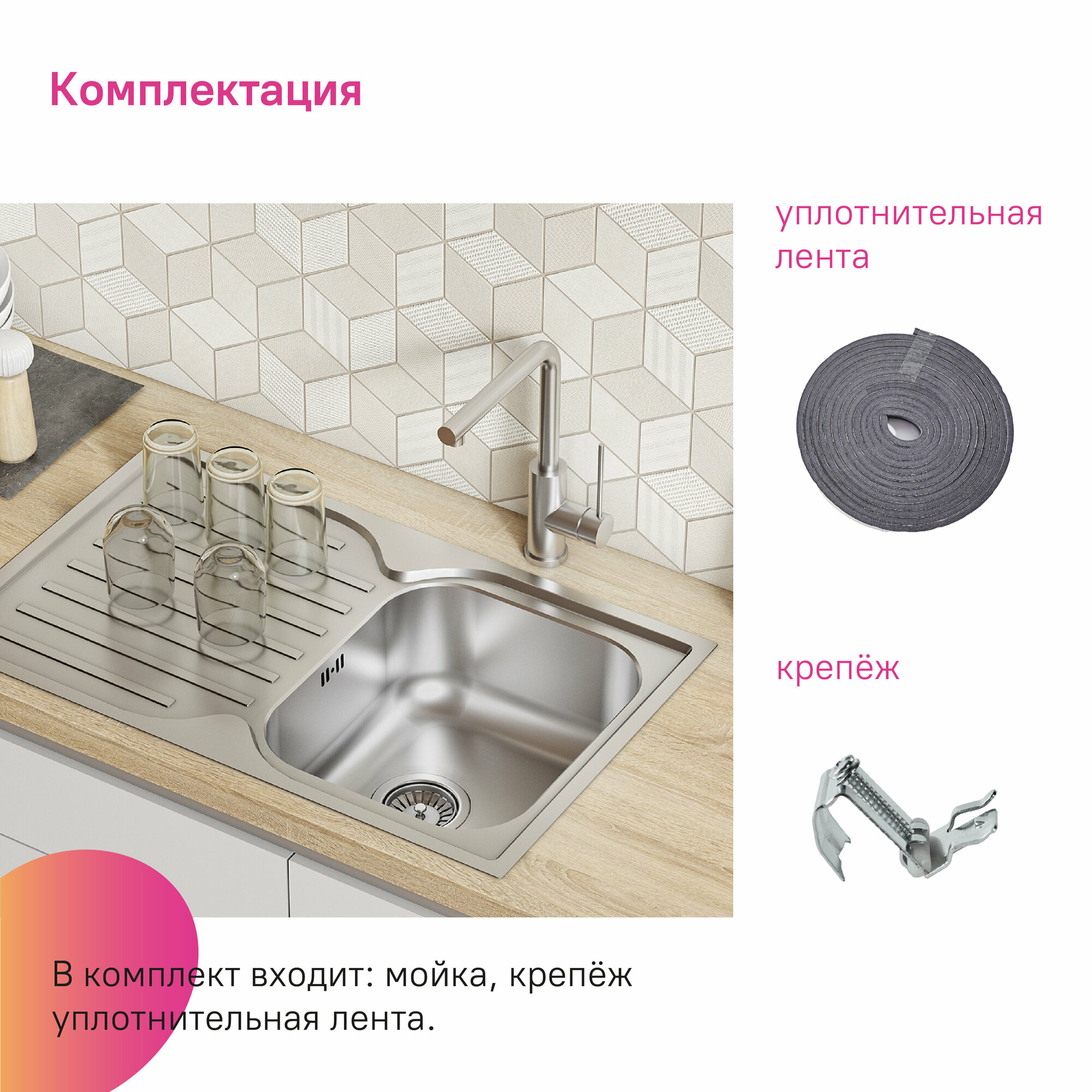 | Комплектация | кухонная мойка, паспорт |