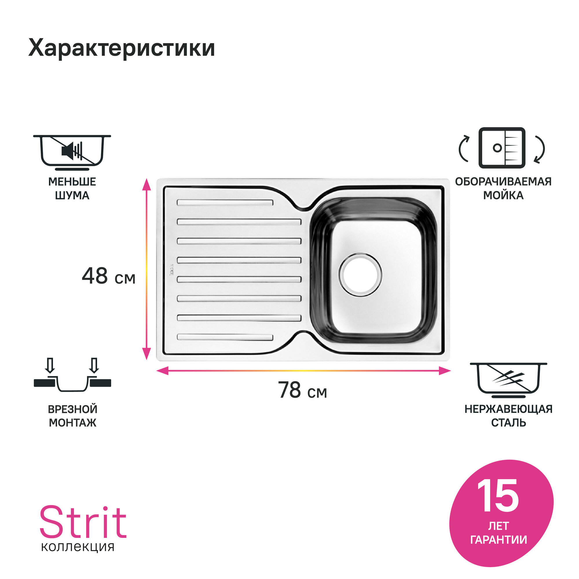 Strit – популярная коллекция невероятно удобных кухонных моек различной функциональности. Мойки Strit отличает широкий модельный ряд. Модель с 1 чашей подходит к любому гарнитуру или тумбе от 45 см. Мойка оборудована вместительным крылом с геометричным узором. На нем легко поместится вся вымытая посуда и продукты для разморозки. Мойка Strit имеет текстуру с эффектом шелковой поверхности благодаря специальной обработке стали. Это придает ей современный технологичный вид. • Мойка IDDIS® изготовлена из качественной нержавеющей стали, которая не боится ни бытовой химии, ни царапин. • Специальное антишумовое покрытие и полимерные накладки на оборотной стороне чаши снижают шум при использовании мойки. • Монтаж кухонной мойки IDDIS® максимально удобен и универсален. Она устанавливается сверху в столешницу – крылом налево или направо. • Мойка IDDIS® полностью готова к установке: крепеж, шаблон для выреза столешницы и эластичная уплотнительная лента поставляются в комплекте.• Гарантия на мойку Strit – 15 лет. (с) Авторский текст, апрель 2022 г.