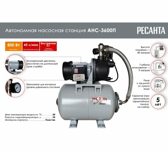 Практичность, экономичность и приемлемая стоимость делают модель насосной станции от бренда "Ресанта" востребованной и популярной среди потребителей.