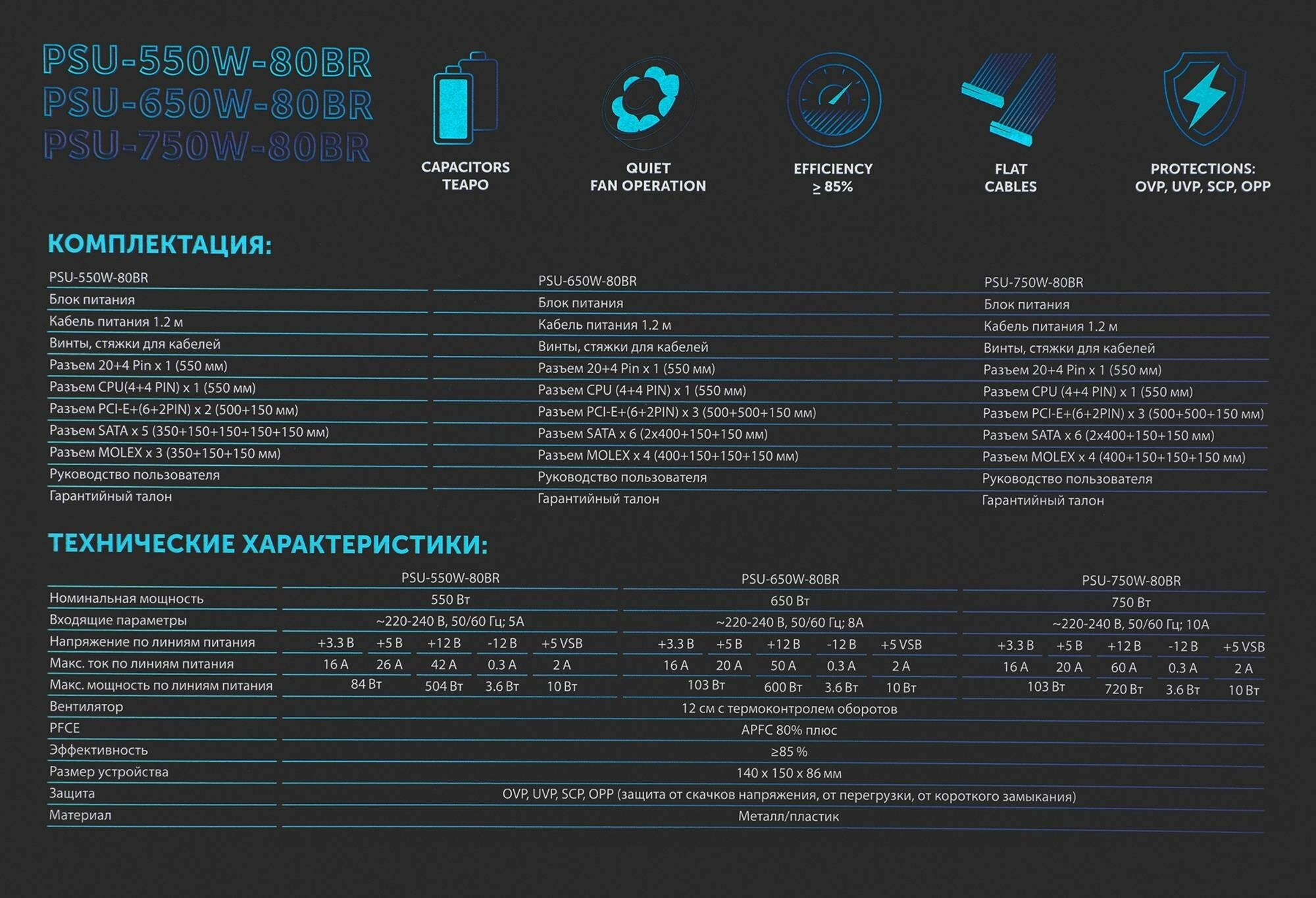 | Наименование модели | PSU-650W-80BR |