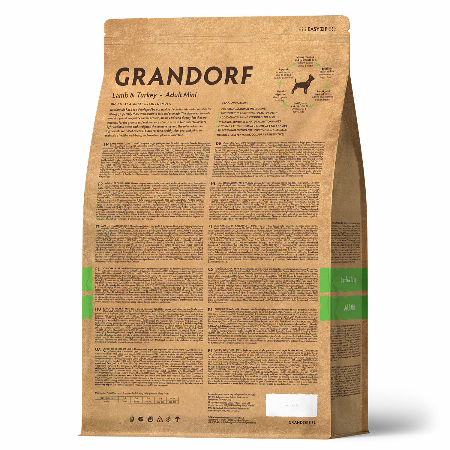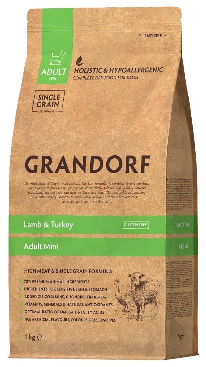 Grandorf Mini Lamb & Turkey - это низкозерновой сухой корм с ягненком и индейкой. Предназначен для кормления взрослых собак маленьких пород.