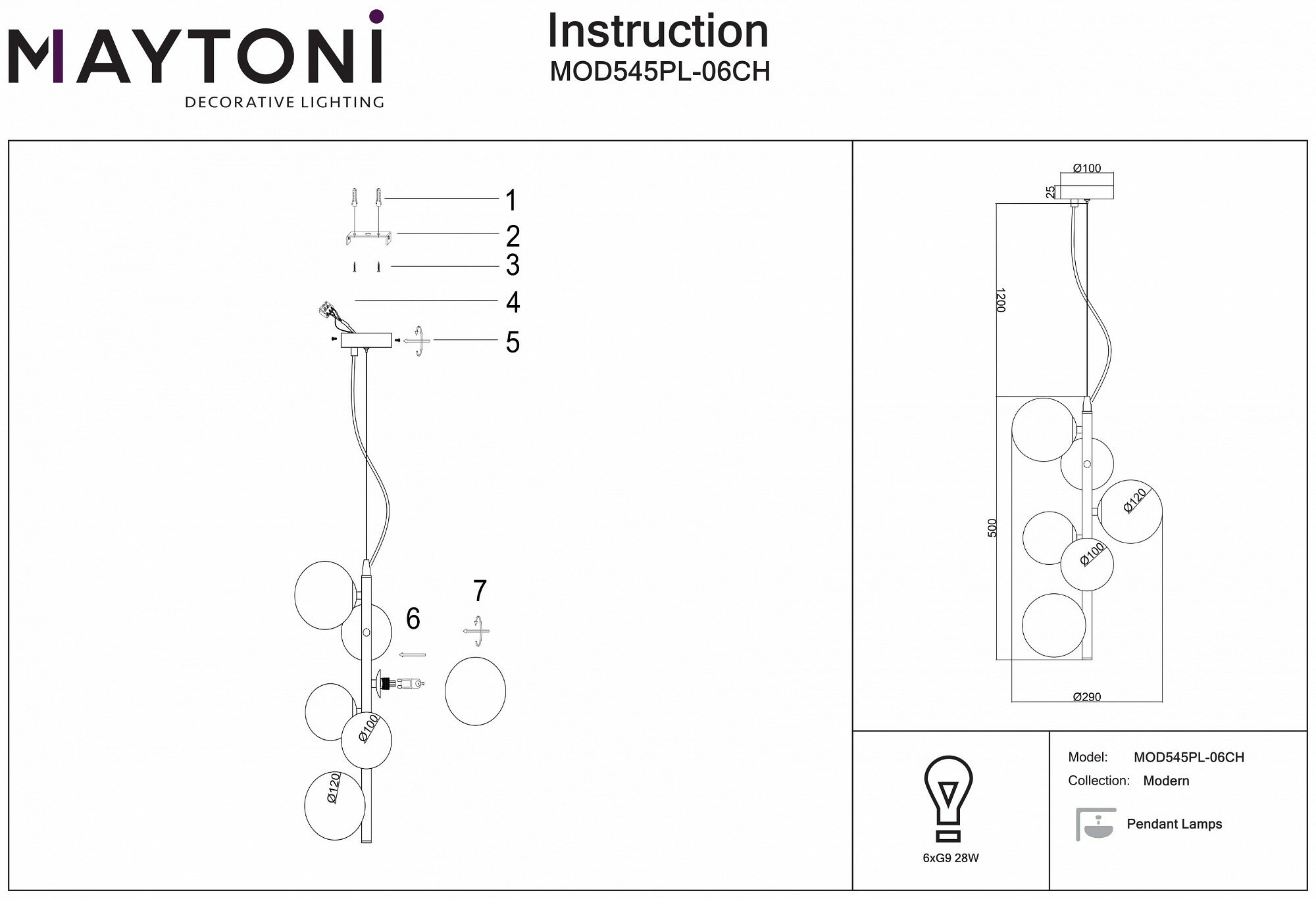 | Количество плафонов | 6 |
