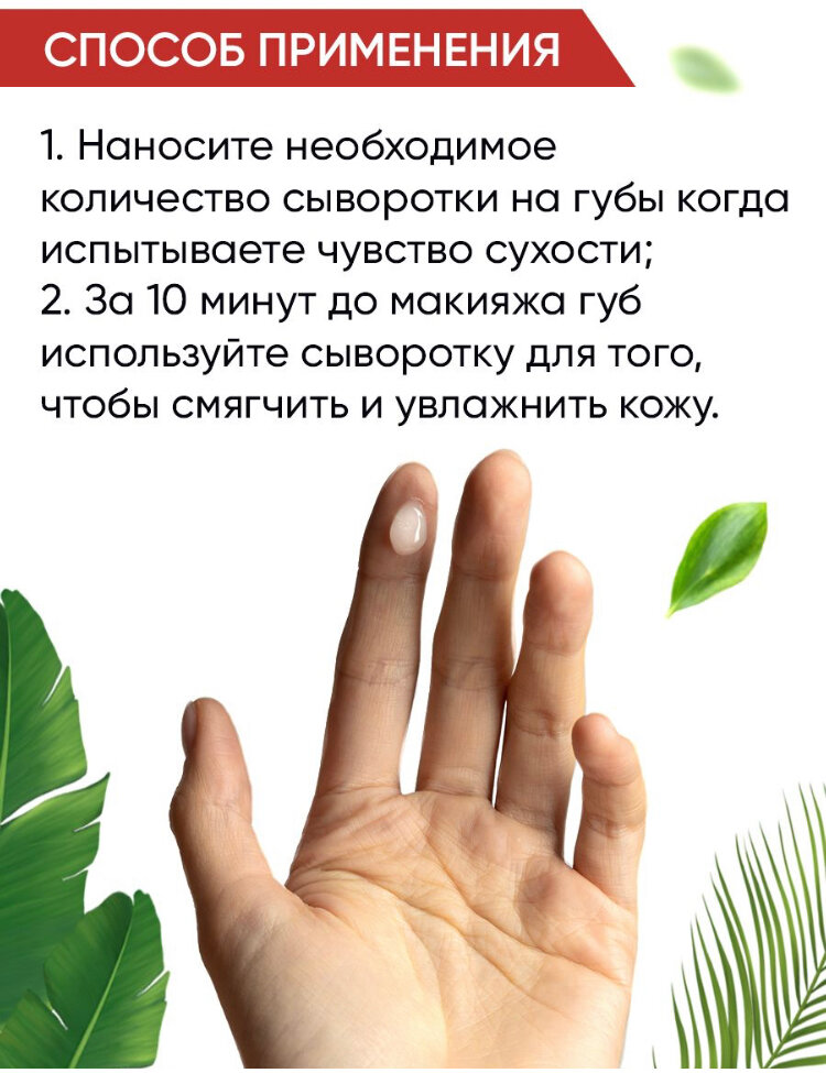 Сыворотка с церамидами и пантенолом восстанавливает кожу губ, устраняет сухость, шелушения и ощущение стянутости. Активные компоненты в составе питают, увлажняют, разглаживают и смягчают кожу губ, повышают ее упругость и эластичность. Средство подготавливает губы к нанесению макияжа.