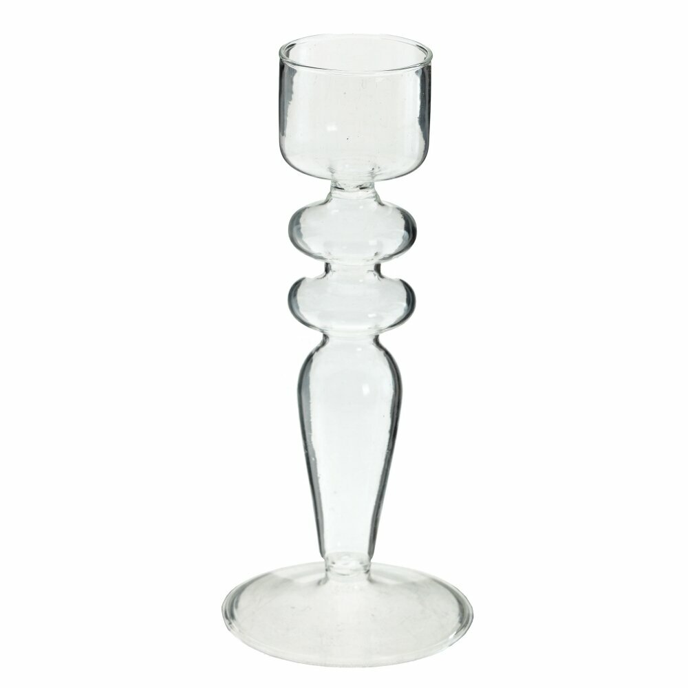 Подсвечник, L8 W8 H19 см Оригинальный стеклянный подсвечник - прекрасный аксессуар для оформления праздничного стола. Он дополнит сервировку стола, подойдет для романтического вечера, или, просто украсит ваш дом. Диаметр свечи 4,5 см.