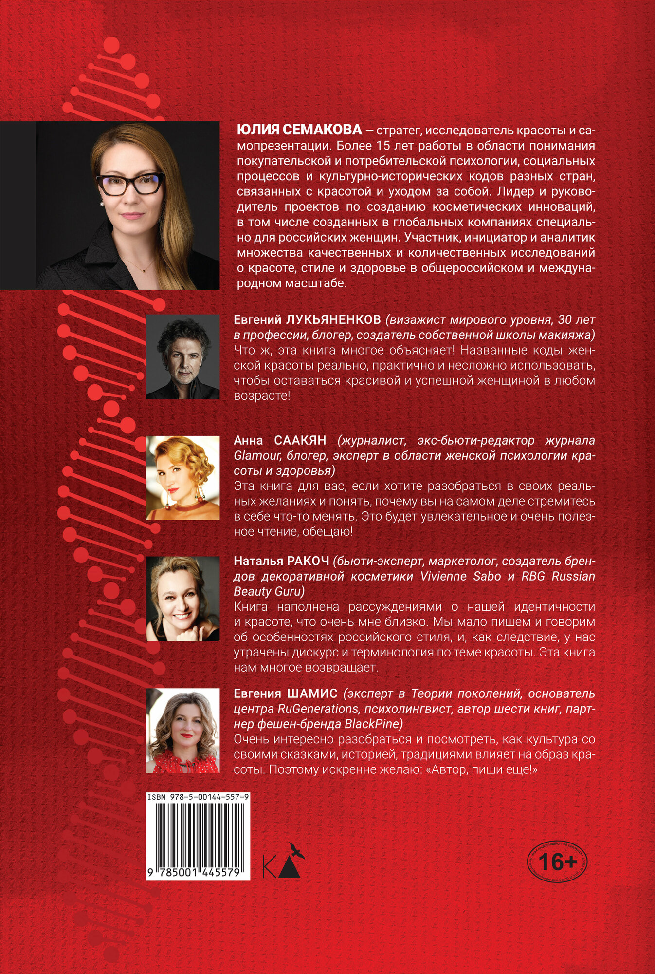 Юлия Семакова - стратег, исследователь красоты и самопрезентации. Более 15 лет работы в области понимания покупательской и потребительской психологии, социальных процессов и культурно-исторических кодов разных стран, связанных с красотой и уходом за собой. Лидер и руководитель проектов по созданию косметических инноваций, в том числе созданных в глобальных компаниях специально для российских женщин. Участник, инициатор и аналитик множества качественных и количественных исследований о красоте, стиле и здоровье в общероссийском и международном масштабе.
