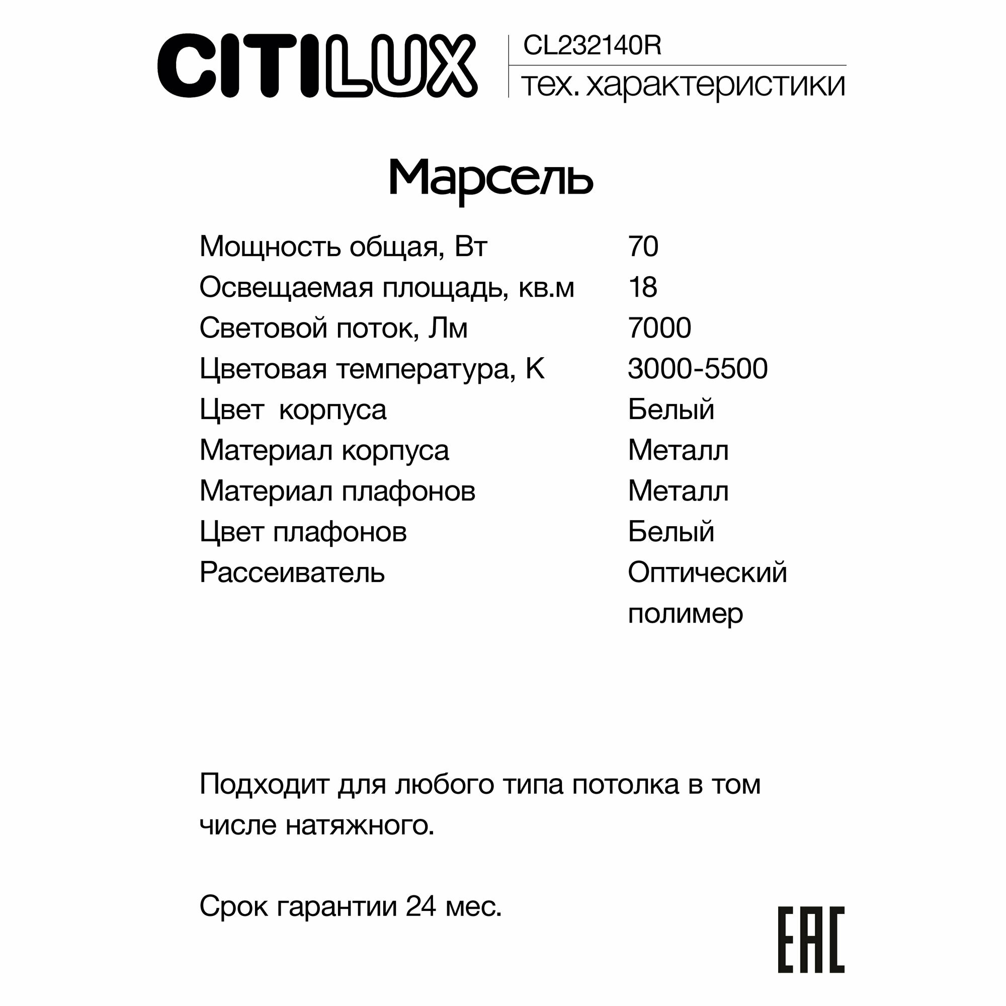 Люстра светодиодная Citilux Марсель CL232140R 70 Вт кол-во ламп: 4 шт. цвет: белый