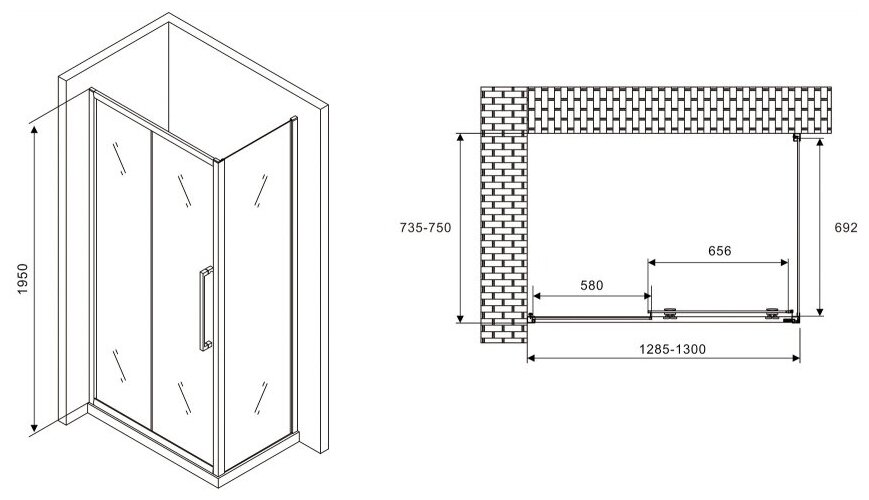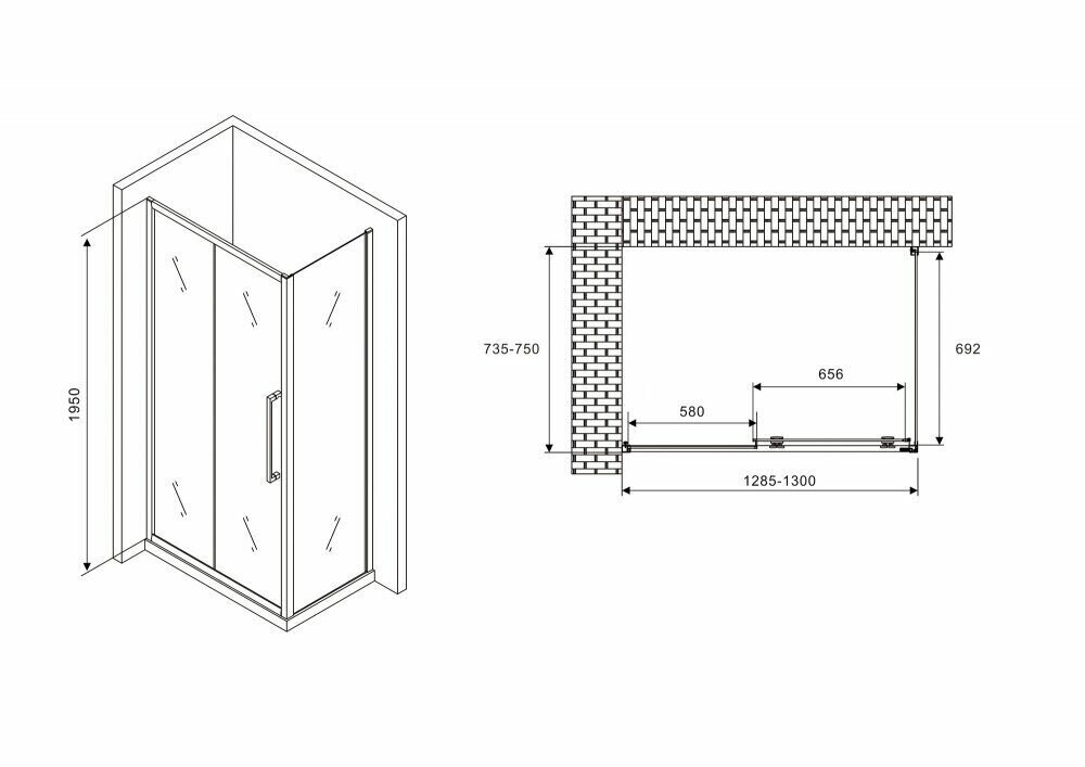 Душевой уголок Abber Schwarzer Diamant 130х75 . Образовывает достаточное пространство внутри, а внешне меняет геометрию, визуально расширяя границы помещения. Предельная легкость и максимальные возможности для трансформации. Поддон: приобретается отдельно.