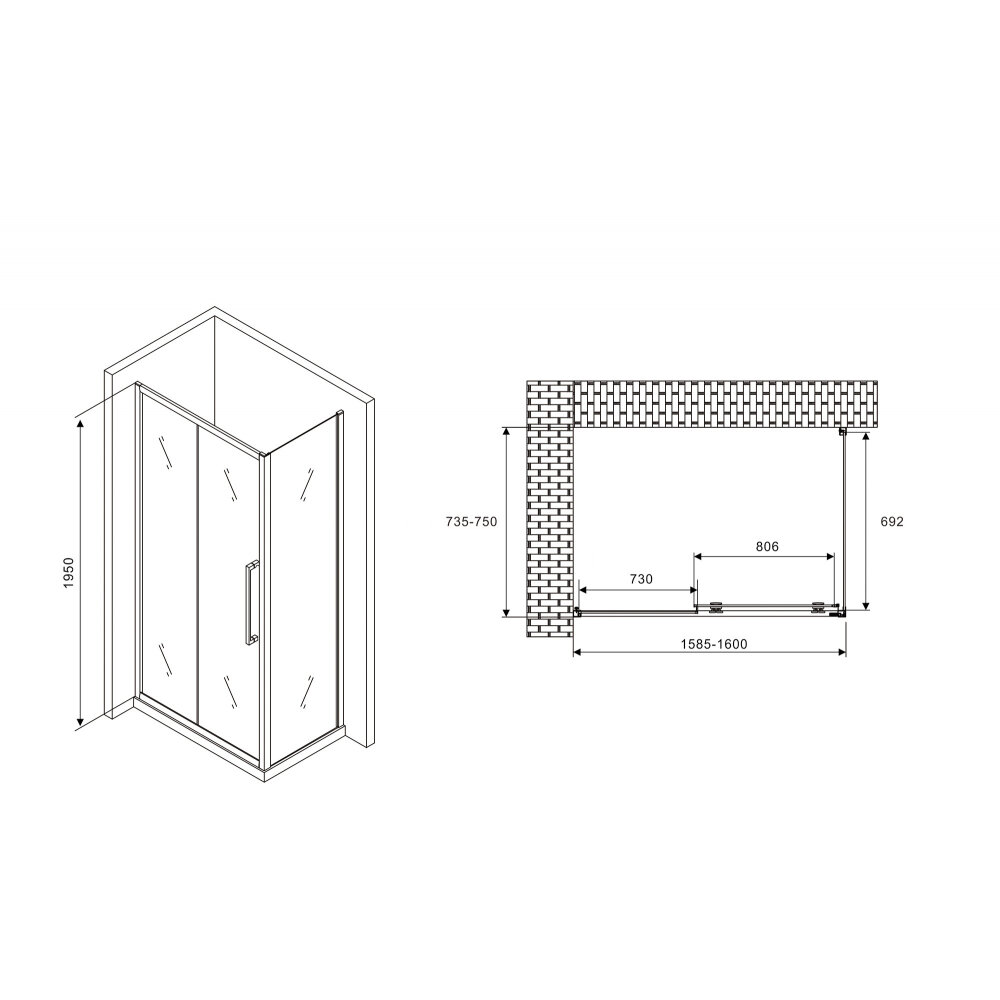 Душевой уголок Abber Schwarzer Diamant 160х75 . Образовывает достаточное пространство внутри, а внешне меняет геометрию, визуально расширяя границы помещения. Предельная легкость и максимальные возможности для трансформации. Поддон: приобретается отдельно.
