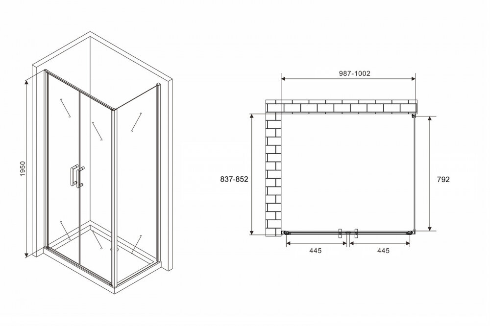 - Размеры (ШхВхД): 1002х1950х852 мм.