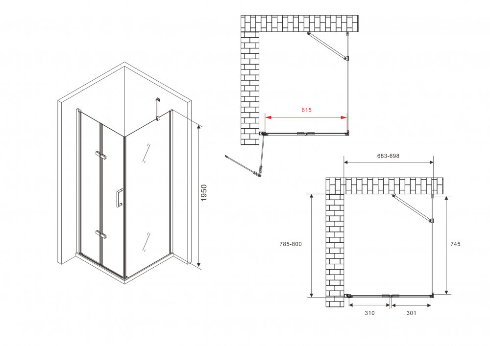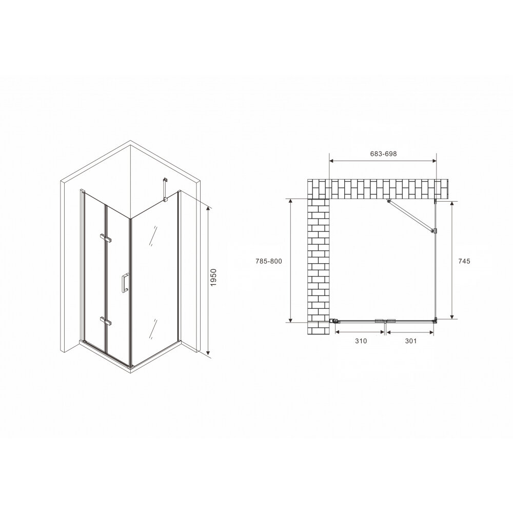 - Размеры (ШхВхД): 698х1950х800 мм.
