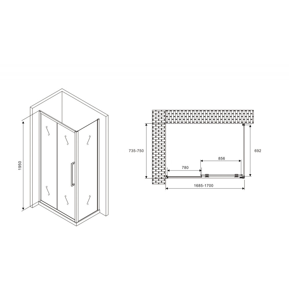 Душевой уголок Abber Schwarzer Diamant 170х75 . Образовывает достаточное пространство внутри, а внешне меняет геометрию, визуально расширяя границы помещения. Предельная легкость и максимальные возможности для трансформации. Поддон: приобретается отдельно.