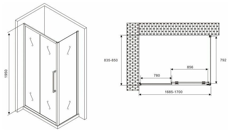 Душевой уголок Abber Schwarzer Diamant 170х85 . Образовывает достаточное пространство внутри, а внешне меняет геометрию, визуально расширяя границы помещения. Предельная легкость и максимальные возможности для трансформации. Поддон: приобретается отдельно.