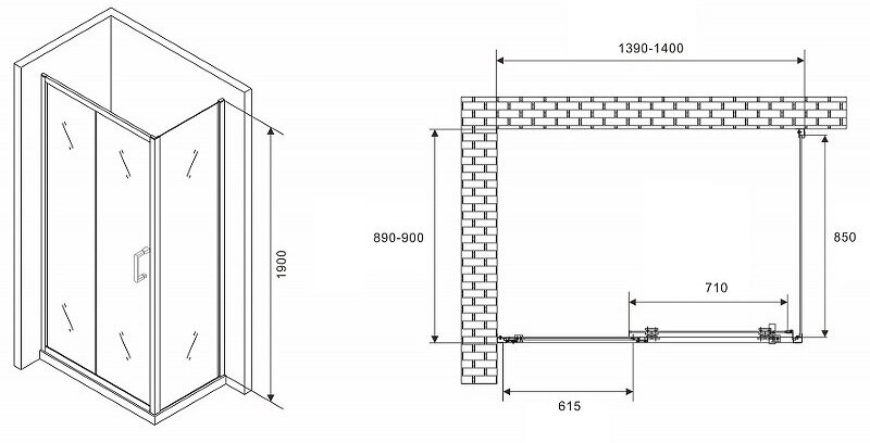 - Размеры (ШхВхД): 1400х1900х900 мм.