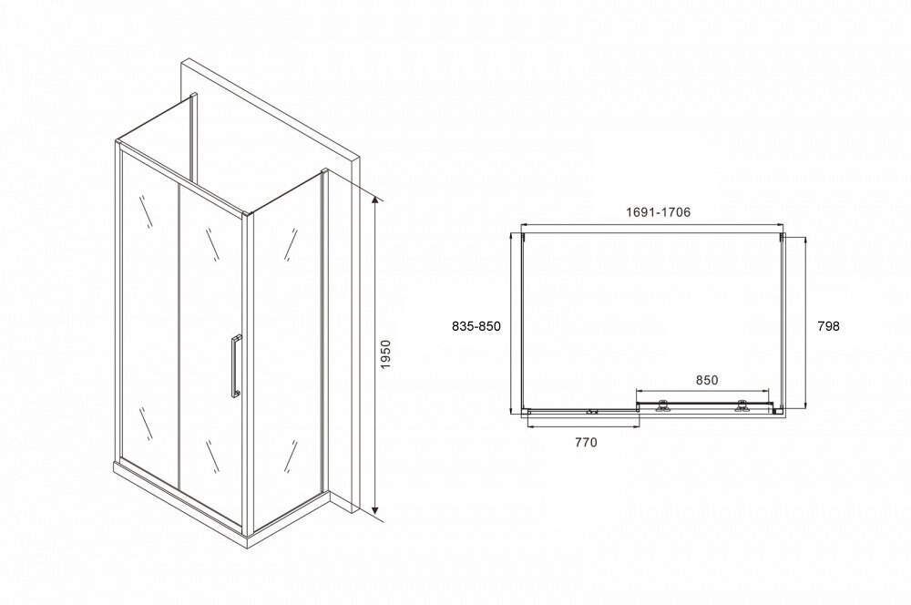 Душевой уголок Abber Schwarzer Diamant 170х85 . Образовывает достаточное пространство внутри, а внешне меняет геометрию, визуально расширяя границы помещения. Предельная легкость и максимальные возможности для трансформации. Поддон: приобретается отдельно.