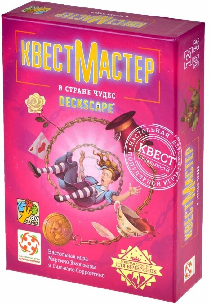 Добро пожаловать в Страну чудес, воображаемое королевство, полное фантазий, которые испытают ваши навыки и обманут ваш разум. Попасть сюда так же просто, как перевернуть игральную карту, но будьте осторожны, иначе застрянете между картами!Страна чудес! Место, где всё не то, чем кажется. Говорящие карты, Безумный Шляпник, широко улыбающийся вам кот. Тут любой сойдёт с ума! А может, капелька безумия — это именно то, что нужно? Пуститесь в погоню за белым кроликом, разгадайте все головоломки и не потеряйте голову — буквально!Чтобы отправиться в это увлекательное приключение, нужно как и в других играх серии КвестМастер последовательно открывать карту за картой и успешно решить все загадки за отведённое время. Для того, чтобы выиграть, вам предстоит решать головоломки, использовать найденные предметы и пытаться проследить сюжет истории, разворачивающейся перед вами. Для участия не нужны какие-либо особые навыки, при должной доле безумия играть могут все! — десятая игра серии настольных игр «Квест-мастер». В одиночку или с друзьями, удастся ли вам вовремя покинуть западню?Комплектация: 64 большие карты размером 115 мм х 81 мм; одно зеркало. Что еще пригодится? Коврики – специальные коврики для настольных игр сделают процесс игры комфортным на любом столе, а также дополнительно защитят игровые предметы. Коробочки – носите игру с собой или просто любите хранить всё "по полочкам"? Тогда Вам пригодятся коробочки для хранения карт и игровых аксессуаров. Кубики – решайте спорные ситуации, выбирайте того, кто будет ходить первым, при помощи броска кубика. Мешочки для кубиков – для удобства хранения и переноски. Хотите особенно заморочиться? Краски для фигурок – сделайте Вашу игру уникальной и раскрасьте фигурки. Кисти – наносите краску легко и качественно.
