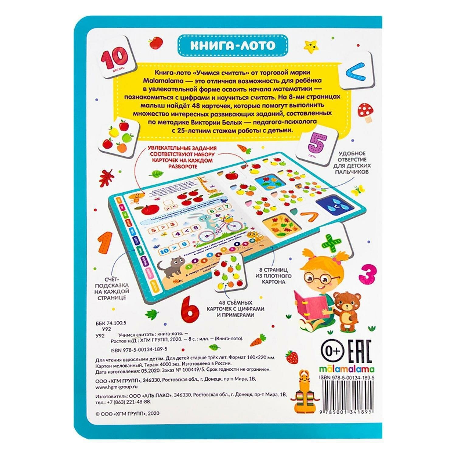 Книга-лото. Учимся считать. 100555с/4 (Белых Виктория Алексеевна); Malamalama, 2021