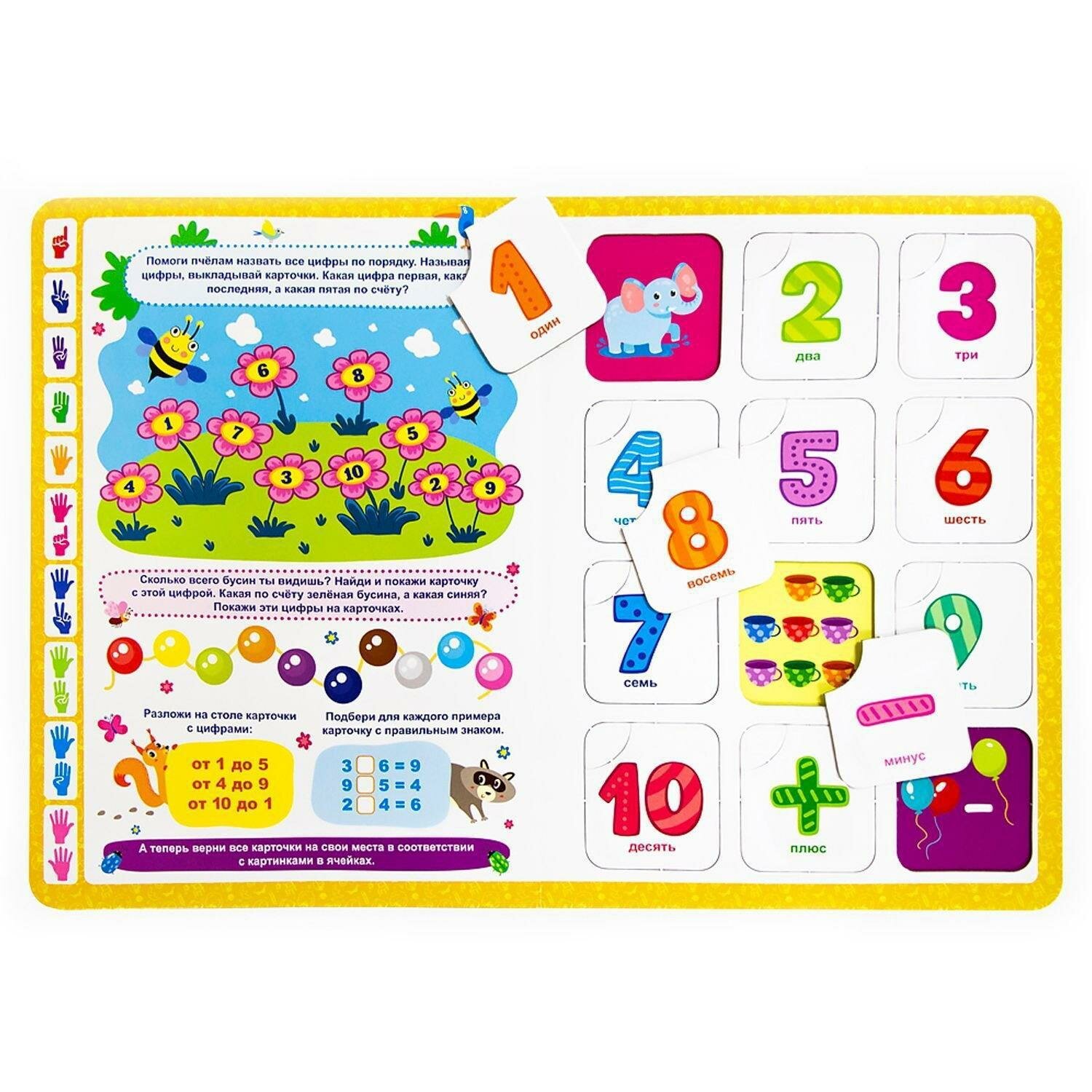 Книга-лото "Учимся считать" - это отличная возможность для ребенка в увлекательной форме освоить начала математики - познакомиться с цифрами и научиться считать. На 8-ми страницах малыш найдет 48 карточек, которые помогут выполнить множество увлекательных и развивающих заданий, созданных по методике Виктории Белых - педагога-психолога с 25-летним стажем работы с детьми