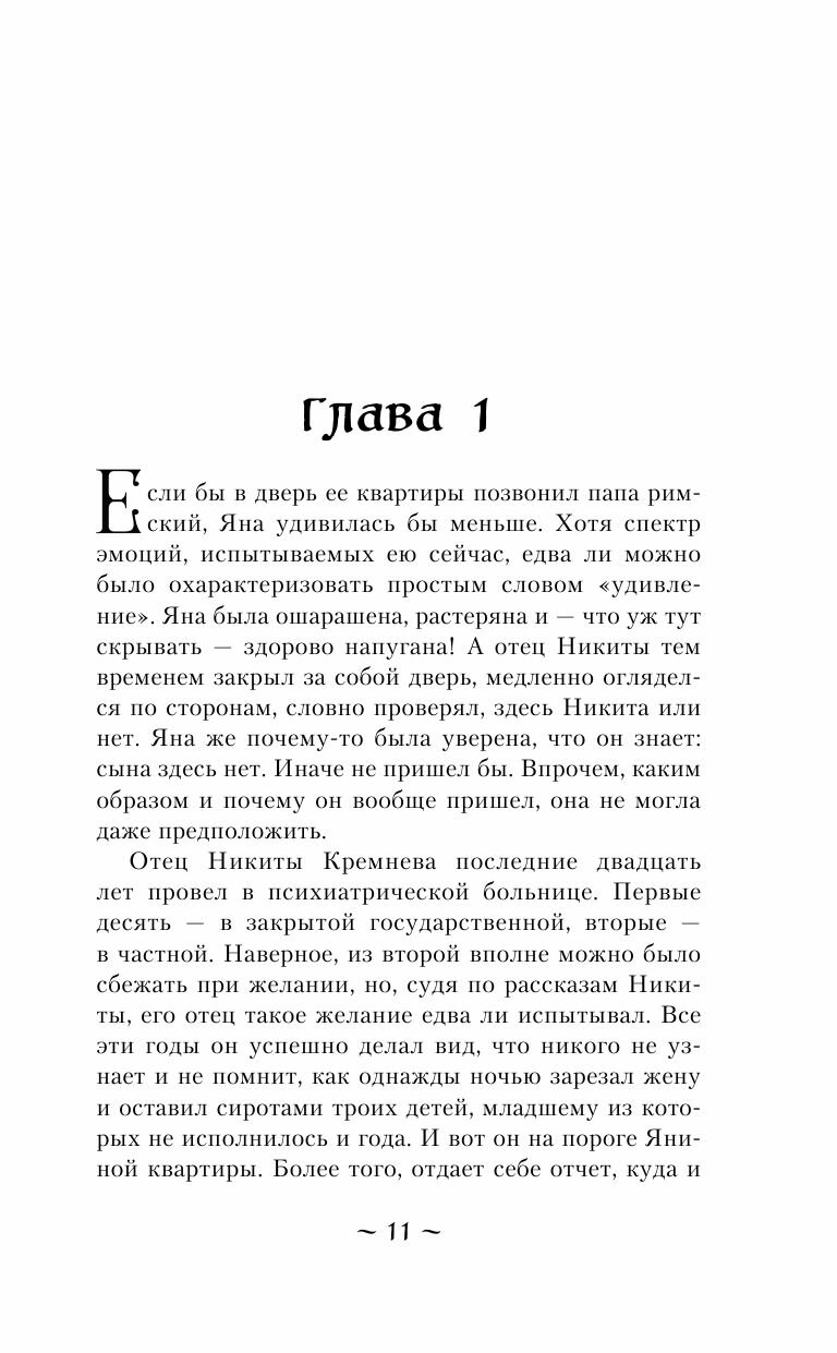Знаете, почему - то призрак девушки с собакой, и то, что Яна её постоянно видела, меня не очень пугало,поэтому почти до половины книги я читала более менее спокойно. Но потом, по мере того как события сменялись одно за другим, страх за Яну и Никиту становился сильнее, и не только за них. И ужас от того, что происходило. Смерть одного из команды просто потрясла. В 4ой книге я считала предателем одного, но им оказался совсем другой! Причём мотив то у него был никакой по сути. Чем ближе к концу книги - тем страшнее. Я глотала страницу за страницей, чтобы быстрее узнать, что дальше. И то, что узнавала - шокировало! Не может быть, не может быть, чтобы так закончилось! Оказывается там 2 психа, 2 ненормальных! Один понятно - маг, а второй - никогда бы не подумала, вот даже мысли не было!
