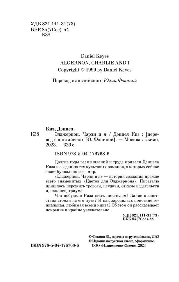 Книга: Элджернон Чарли и я (Дэниел Киз); Эксмо, Редакция 1, 2023
