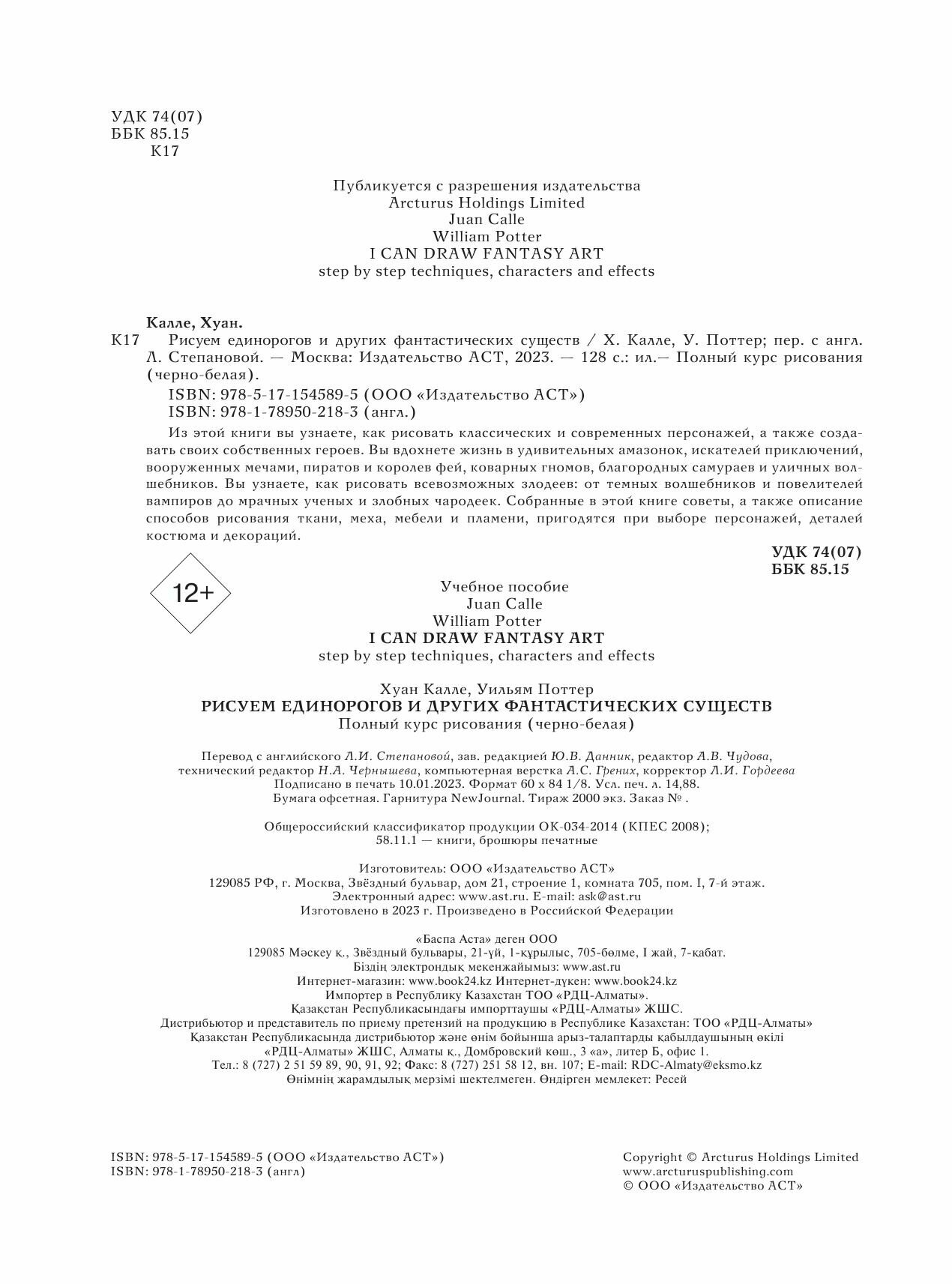 Рисуем единорогов и других фантастических существ (Калле Хуан, Поттер Уильям); АСТ, 2023
