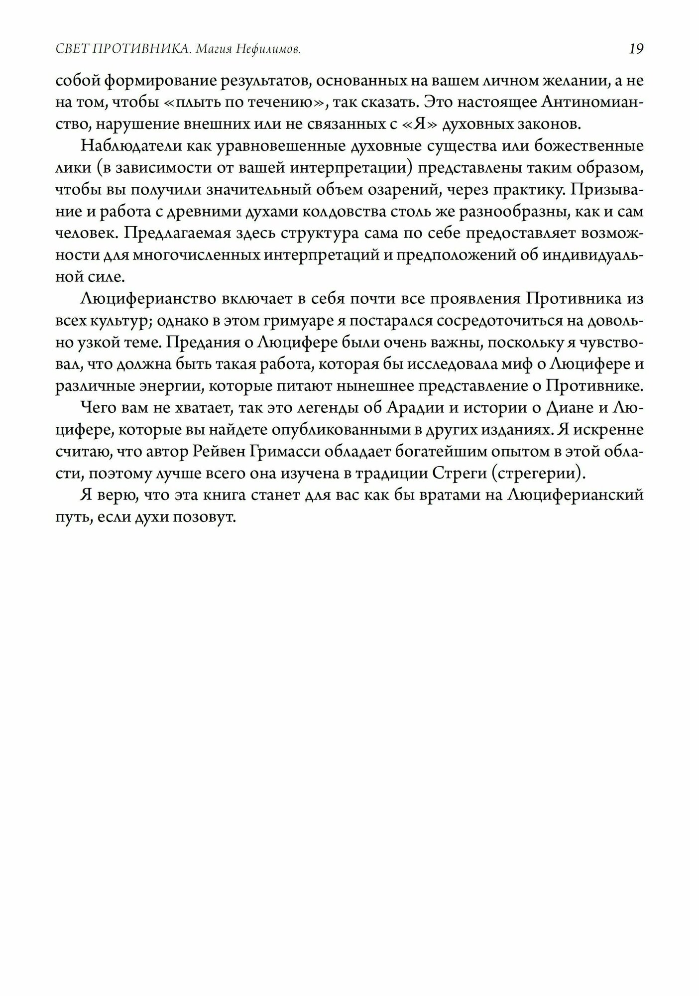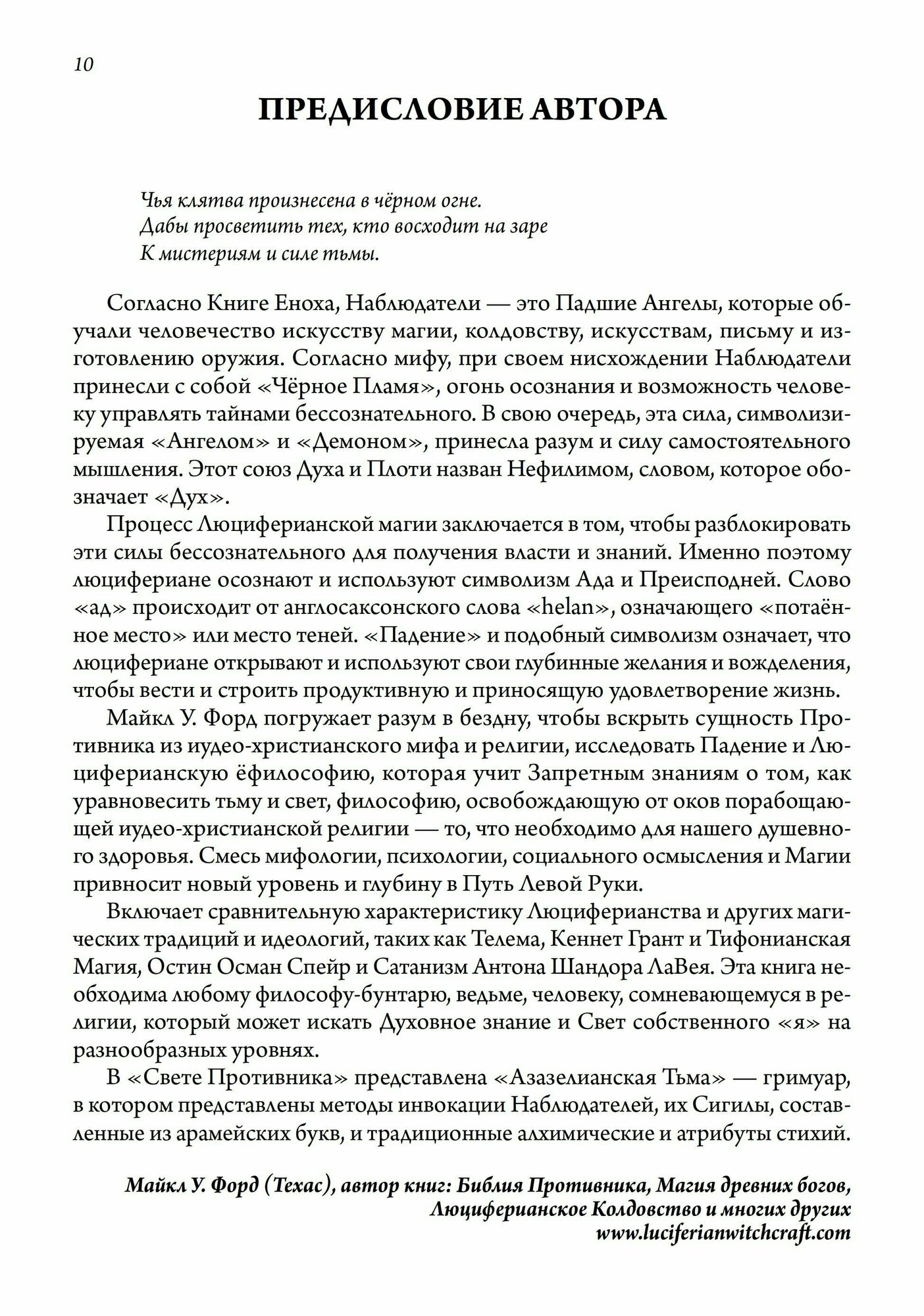 Эта книга задумана как руководство и богословское обоснование аргументов, лежащих в основе практики Магии с точки зрения парадигмы Противника или Бунтаря, ставящей личность во главу угла напротив духовного союза с высшей силой. Азазелианская Тьма — это Гримуар Нефилимов, Магический союз Духа с Землей.