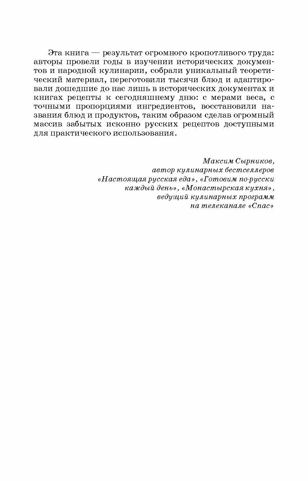 Книга представляет собой фундаментальный труд по исторической и современной русской кухне. На основании изучения материалов летописей, монастырских уставов, дипломатических протоколов, столовых обиходников, этнографических источников и многих других исторических документов и литературных произведений описано как развивалась русская кухня, какими были утварь и оборудование. В ней воссозданы рецептуры и технологии приготовления забытых блюд, количественные значения старинных мер массы и объема, определено происхождение названий блюд. Изучение традиций национальной кухни, способов обработки продуктов, основных сырьевых источников регионов является неотъемлемой частью профессиональных компе-тенций работников индустрии гостеприимства. В книге содержится около 1000 рецептур блюд и напитков. Соответствует современным требованиям Федерального государ-ственного образовательного стандарта среднего профессионального образования и профессиональным квалификационным требованиям. Для студентов техникумов и колледжей, преподавателей, а также работников ресторанного и гостиничного бизнеса, практиков, исследователей и ценителей русской кухни.